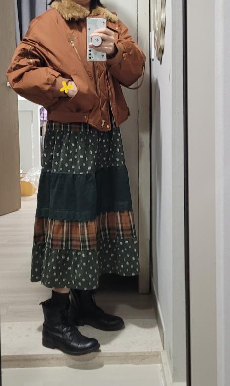 [KiiiKiii 착용] 플라워 하프 덕 다운 점퍼