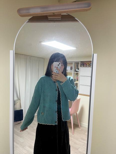 [KiiiKiii 착용] 리본 자카드 니트 가디건