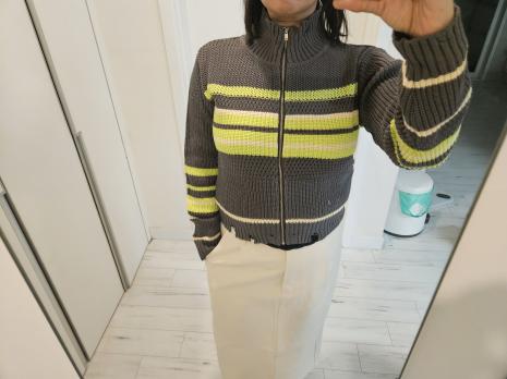 [KiiiKiii 착용] 멀티 스트라이프 집업 가디건