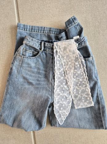레이스 벨트 일자핏 데님