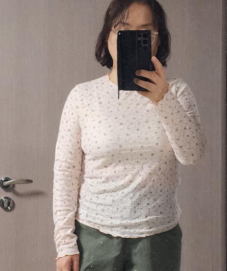 [KiiiKiii 착용] 플라워 패턴 라운드넥 티셔츠