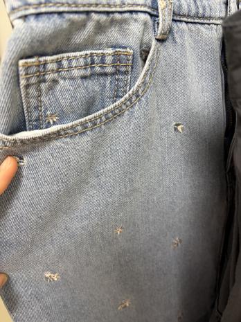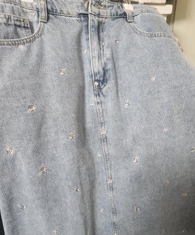 자수포인트 데님 스커트