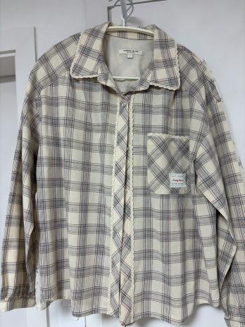 레이스 믹스 체크 블라우스