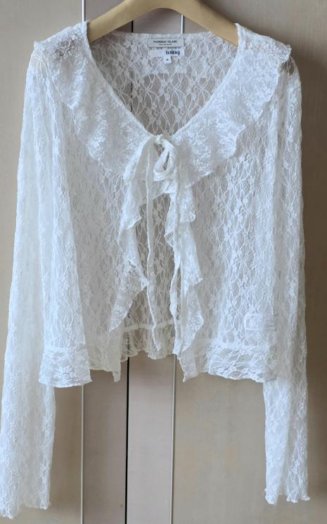 레이스 믹스 프릴 블라우스
