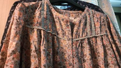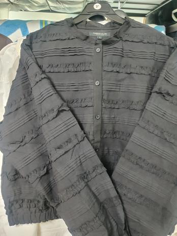 라운드넥 요크 셔링 블라우스