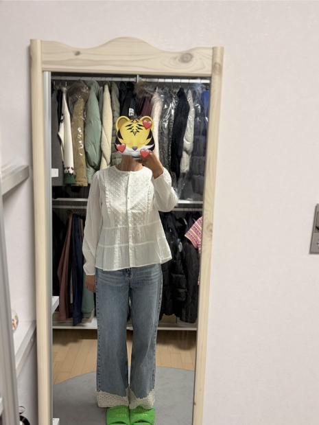 플라워 아일렛 자수 블라우스