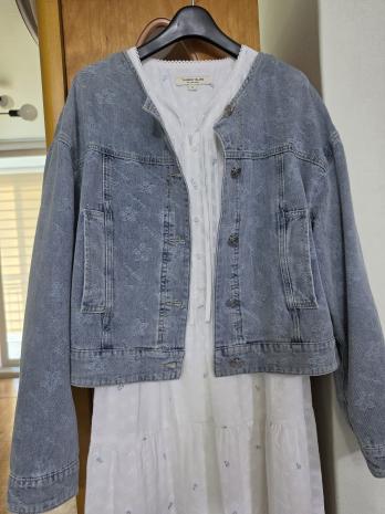 [KiiiKiii 착용] 플라워 자카드 데님자켓