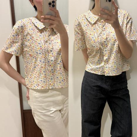 [KiiiKiii 착용] 플라워 패턴 브이넥 블라우스