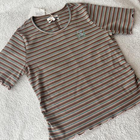 스트라이프 인타록 배색 티셔츠