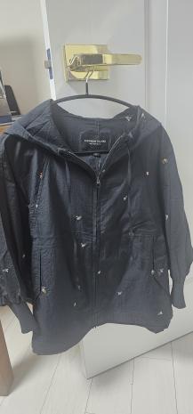 플라워 자수 나일론 후드점퍼