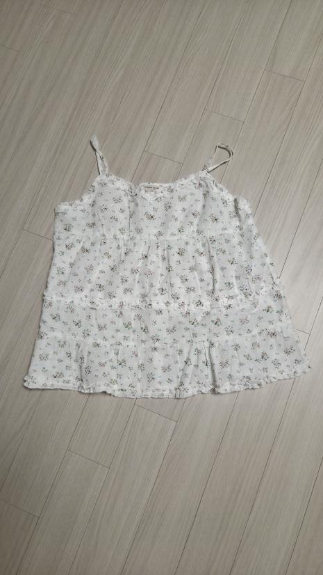 [KiiiKiii 착용] 플라워 프릴 슬리브리스 탑