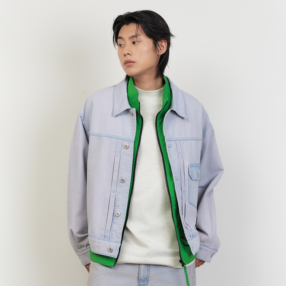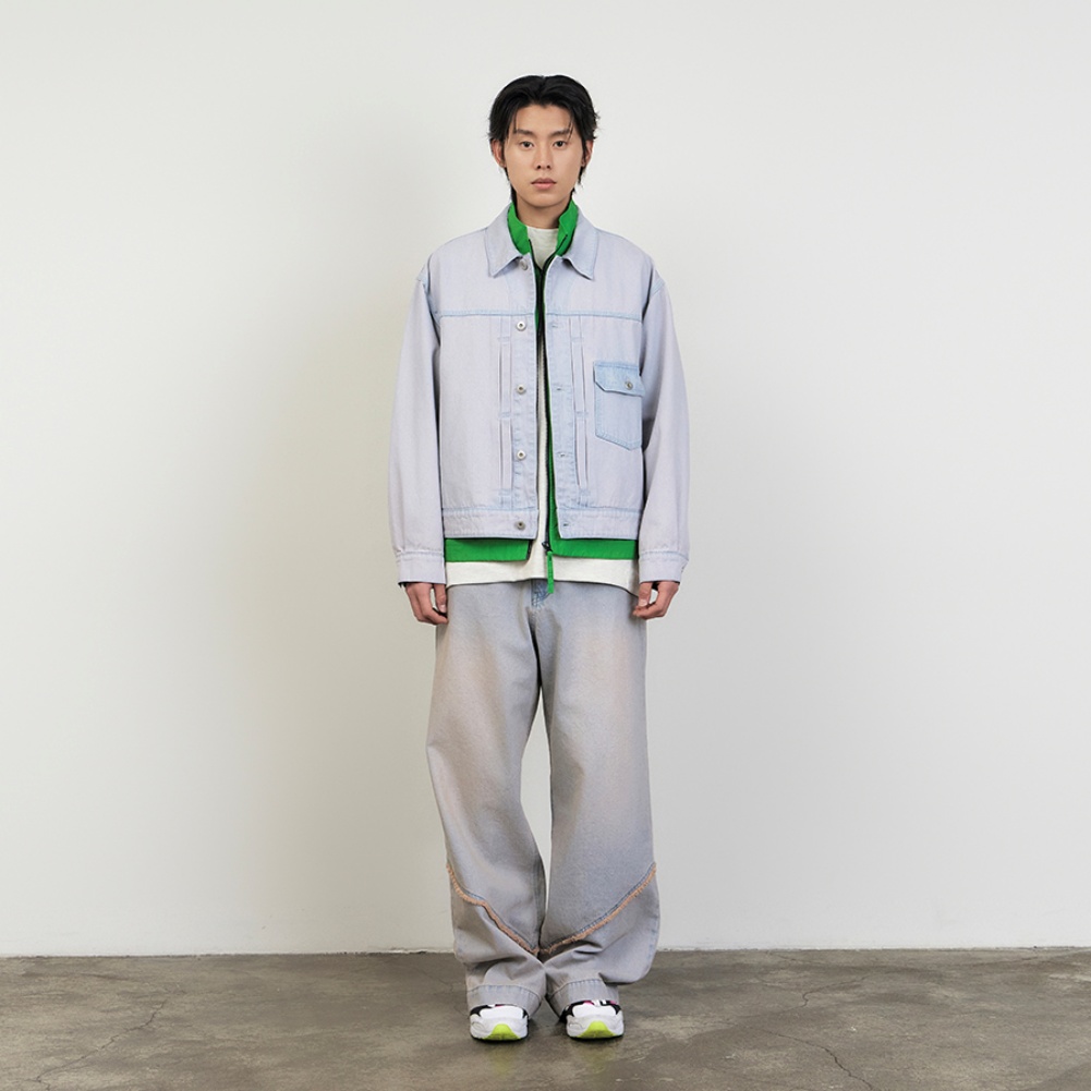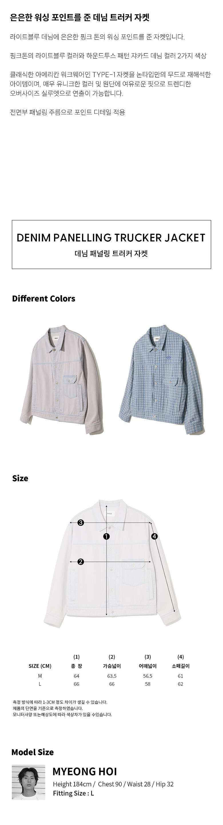 - 핑크톤의 라이트블루 컬러와 하운드투스 패턴 쟈카드 데님 2컬러로 제안