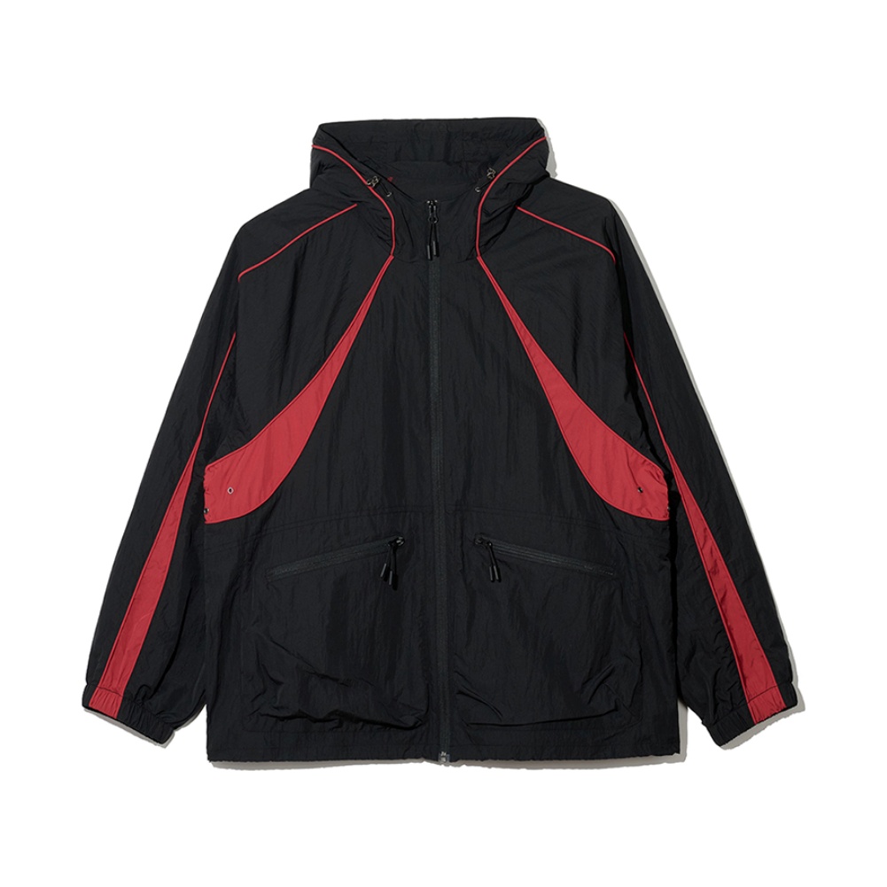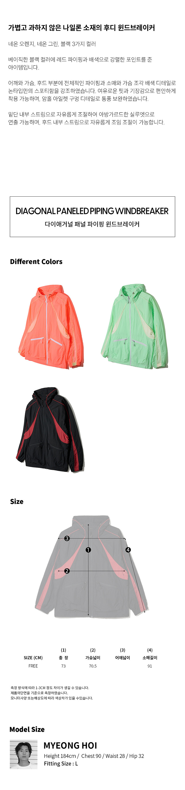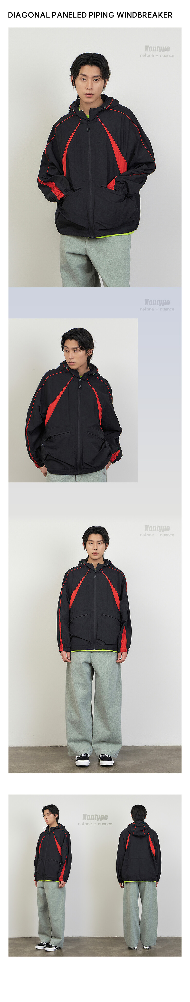 DIAGONAL PANELED PIPING WINDBREAKER (BLACK)