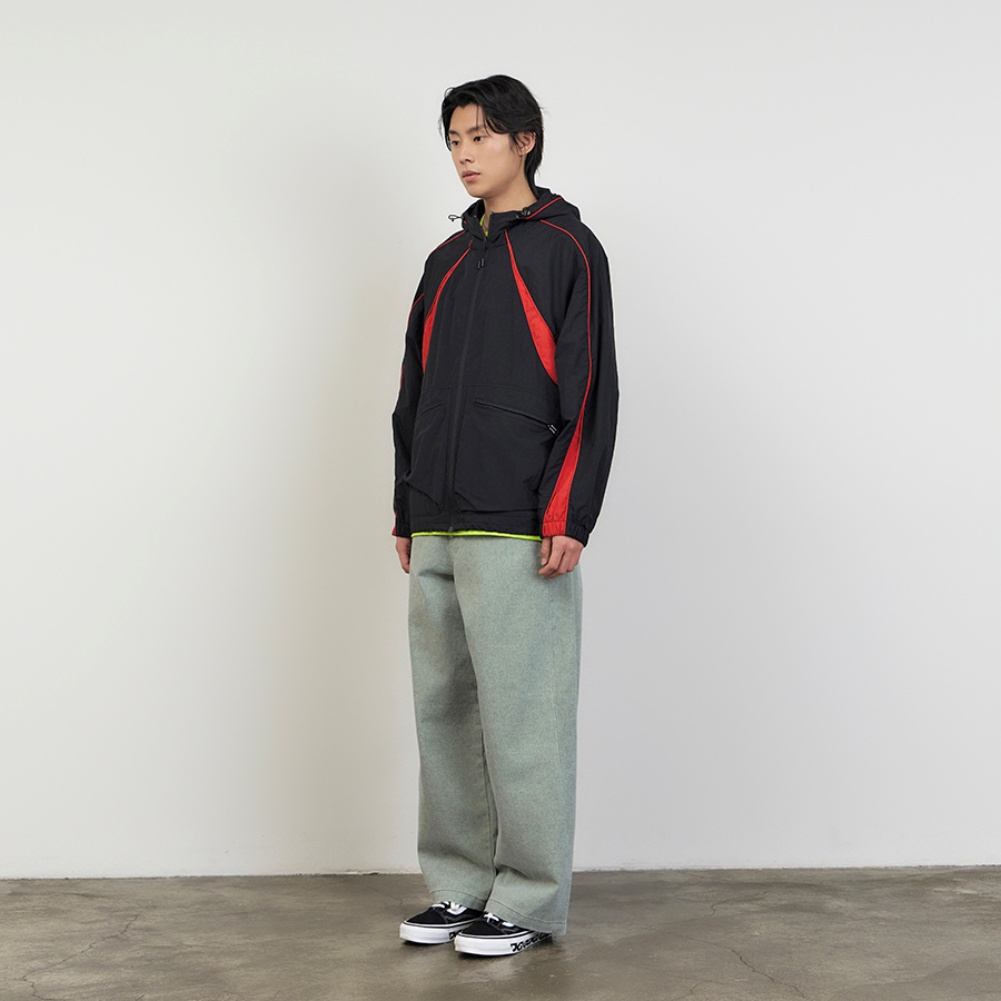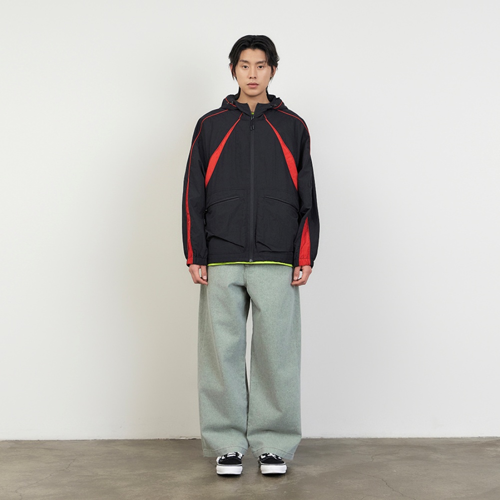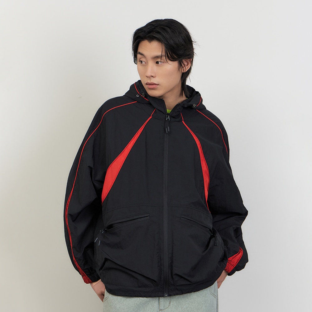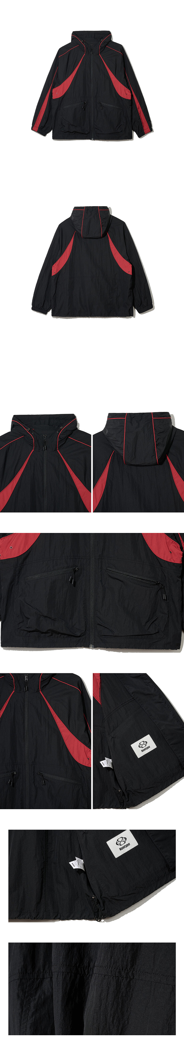 DIAGONAL PANELED PIPING WINDBREAKER (BLACK)