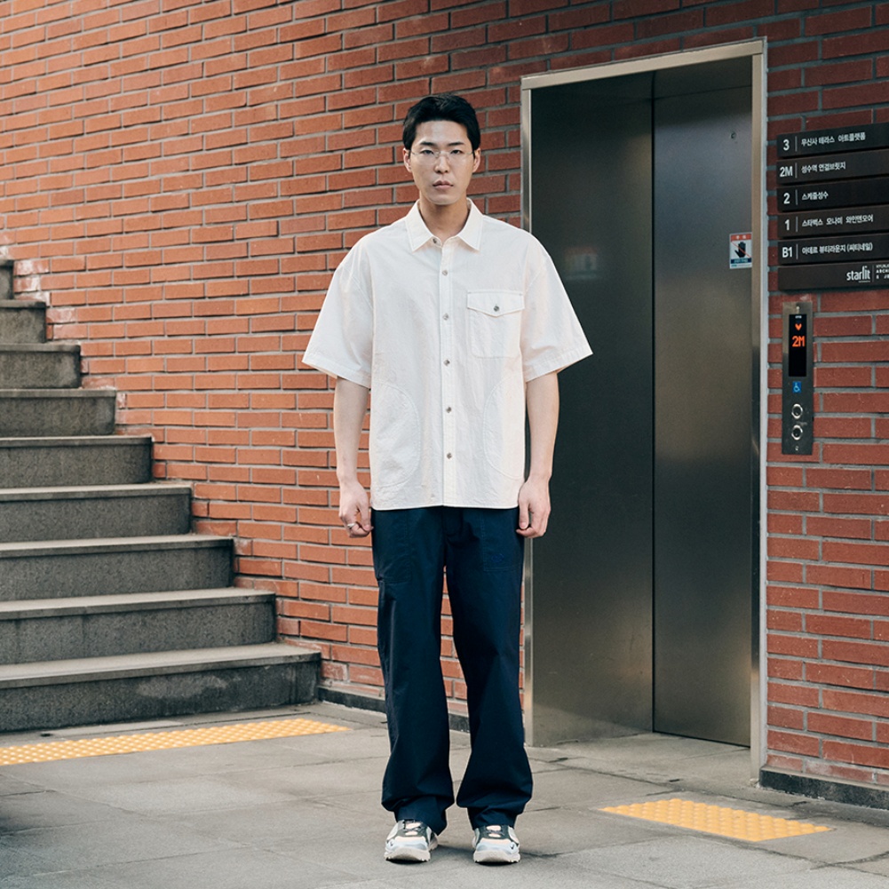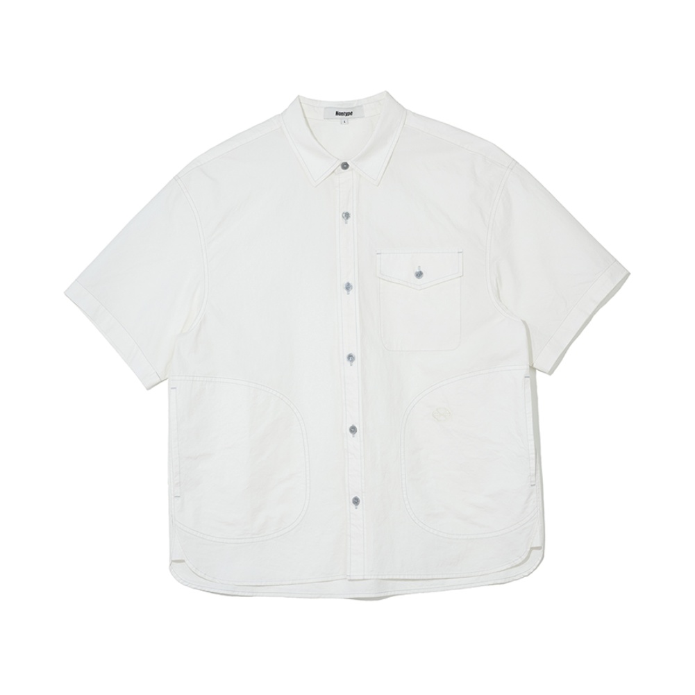 - 화이트 컬러 몸판 위로 전체적으로 그레이 컬러의 봉제 스티치로 은은한 포인트를 준 아이템