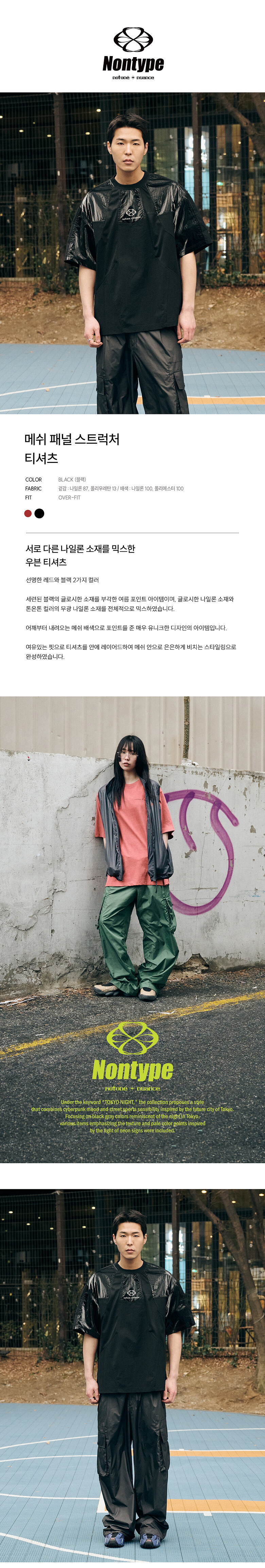 블랙 : 겉감 나일론87%, 폴리우레탄13%, 배색1 나일론100%, 배색2 폴리에스터100%