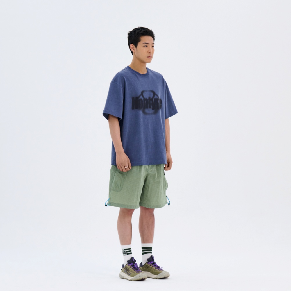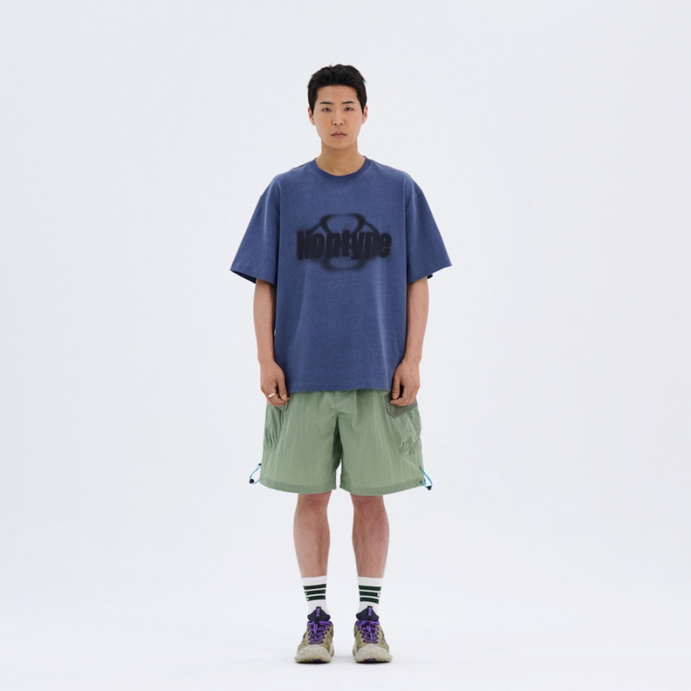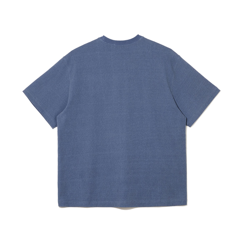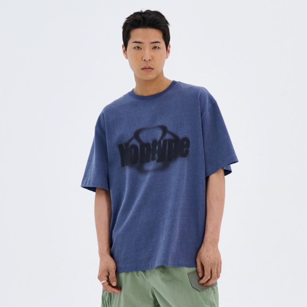 - 피그먼트 워싱 소재를 사용하여, 은은하게 바랜듯한 레트로한 네이비 컬러감에 블랙 페이드 프린트로 선보이는 아이템