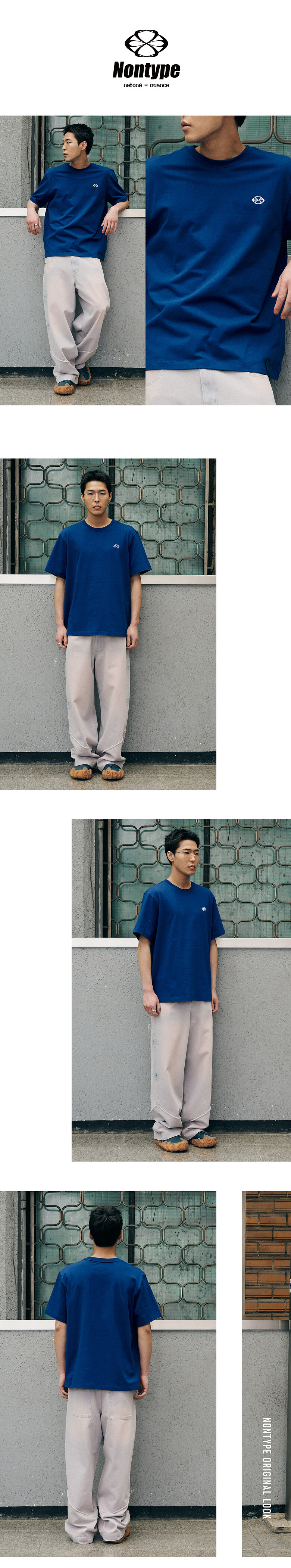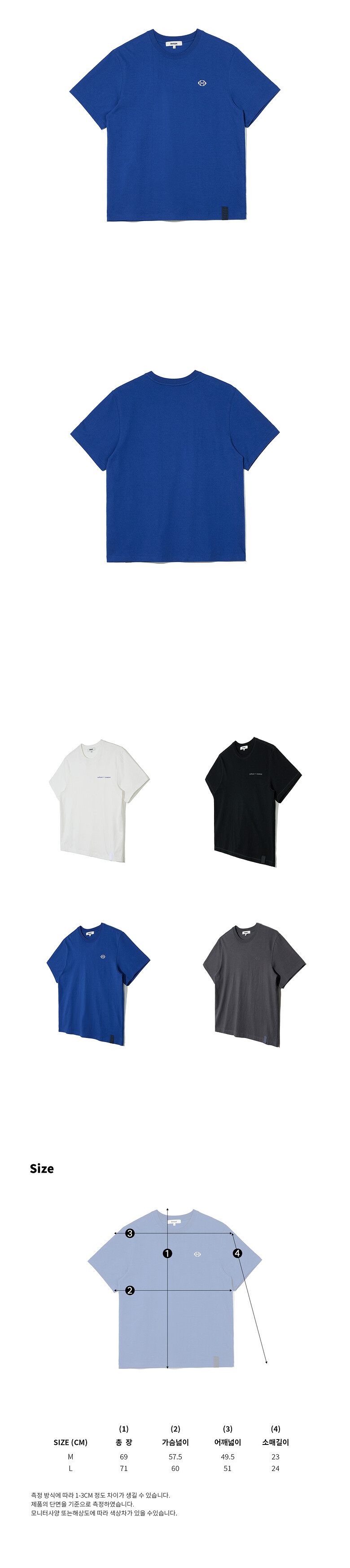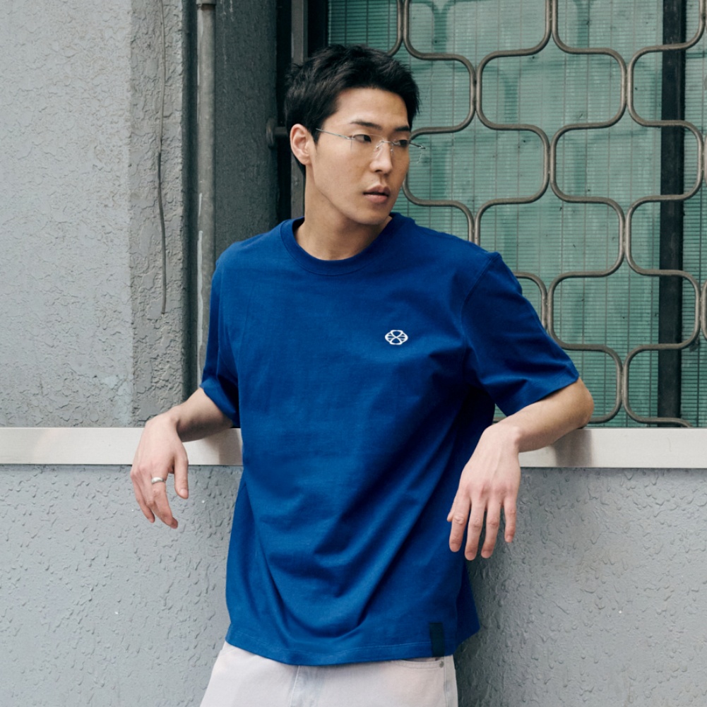 - 선명한 블루 몸판에 가슴의 화이트 컬러 브랜드 심볼 프린트로 구현한 베이직 프린트 티셔츠
