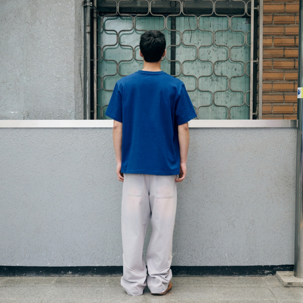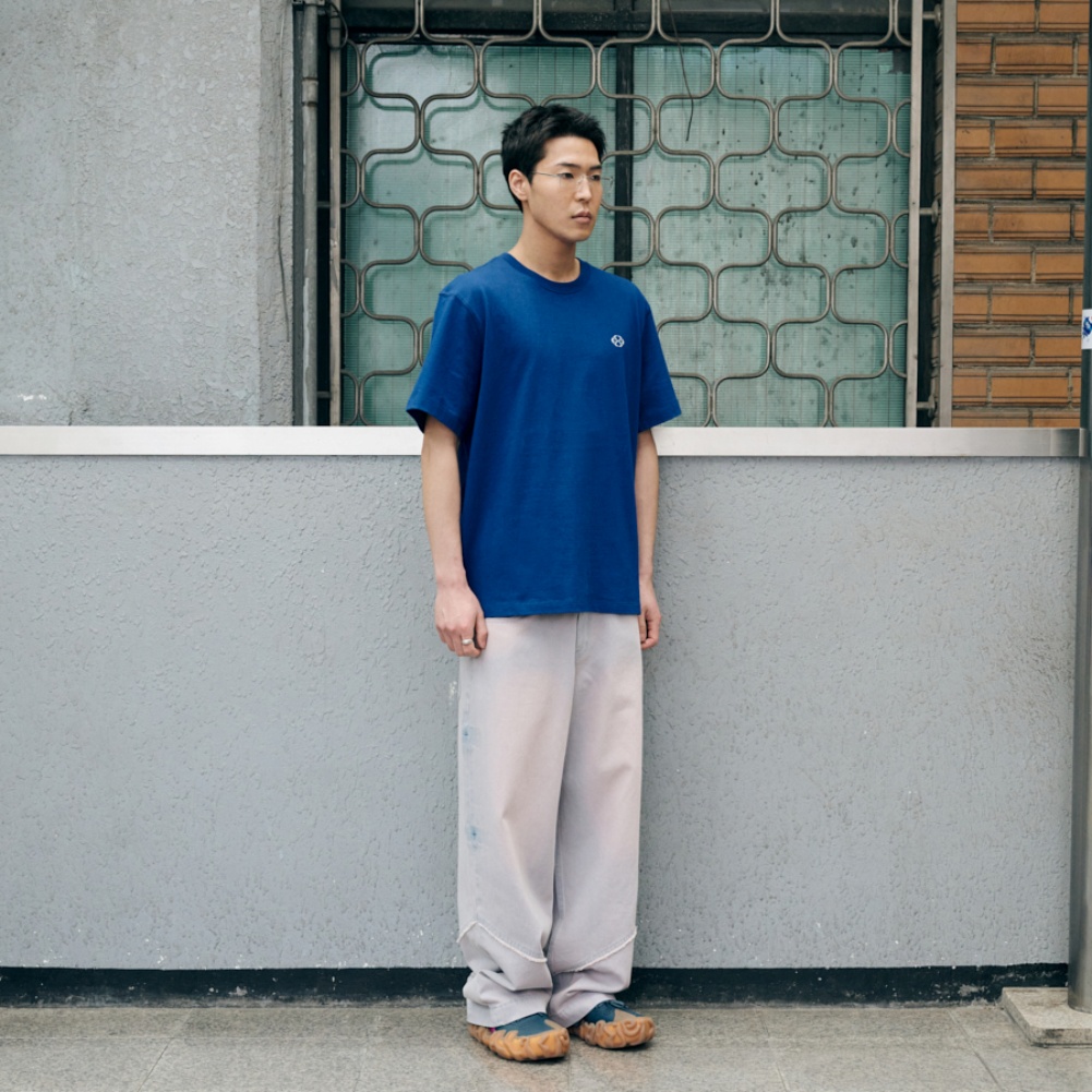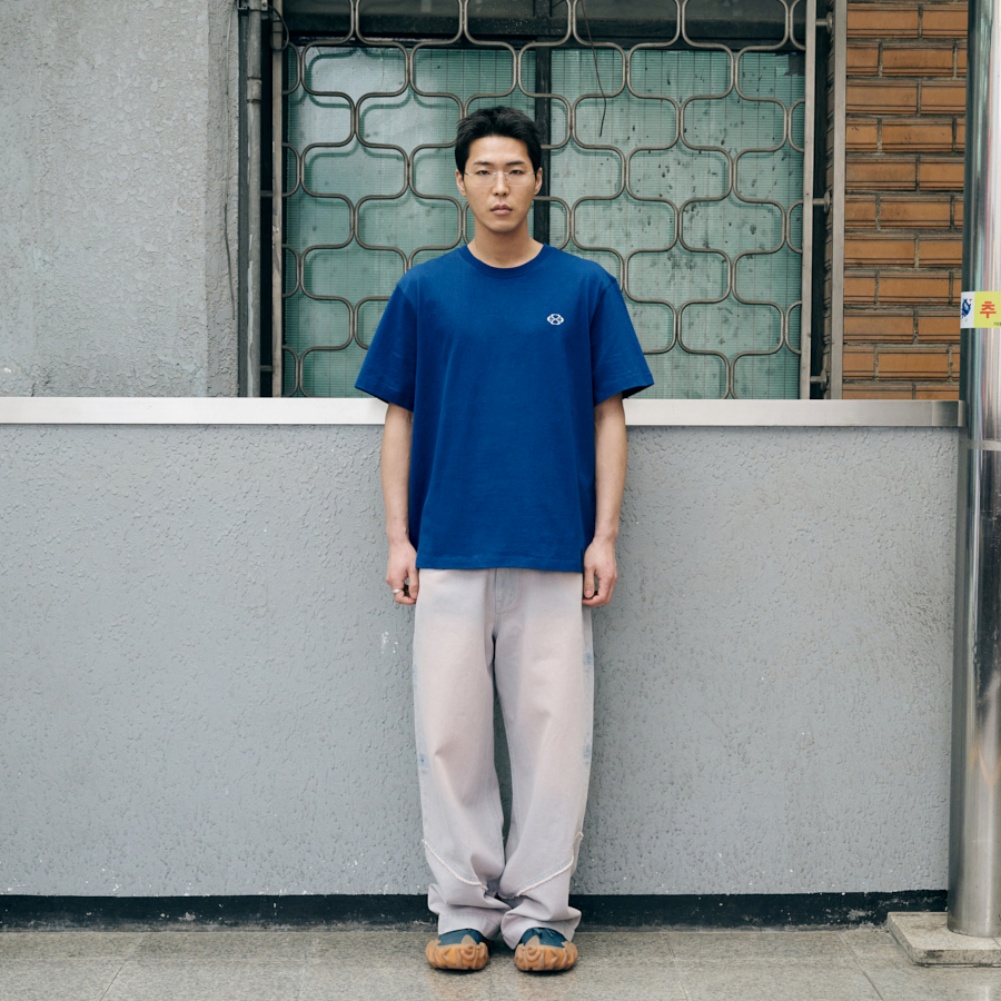 - 선명한 블루 몸판에 가슴의 화이트 컬러 브랜드 심볼 프린트로 구현한 베이직 프린트 티셔츠