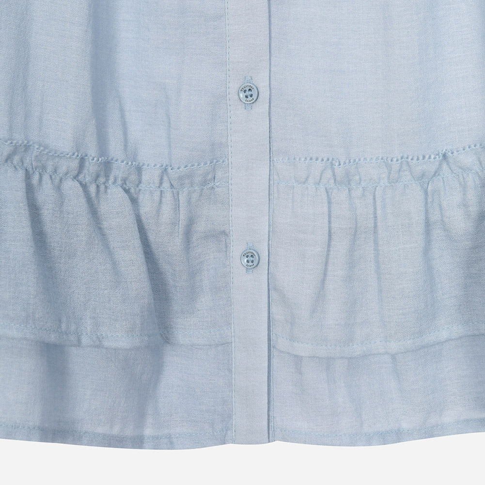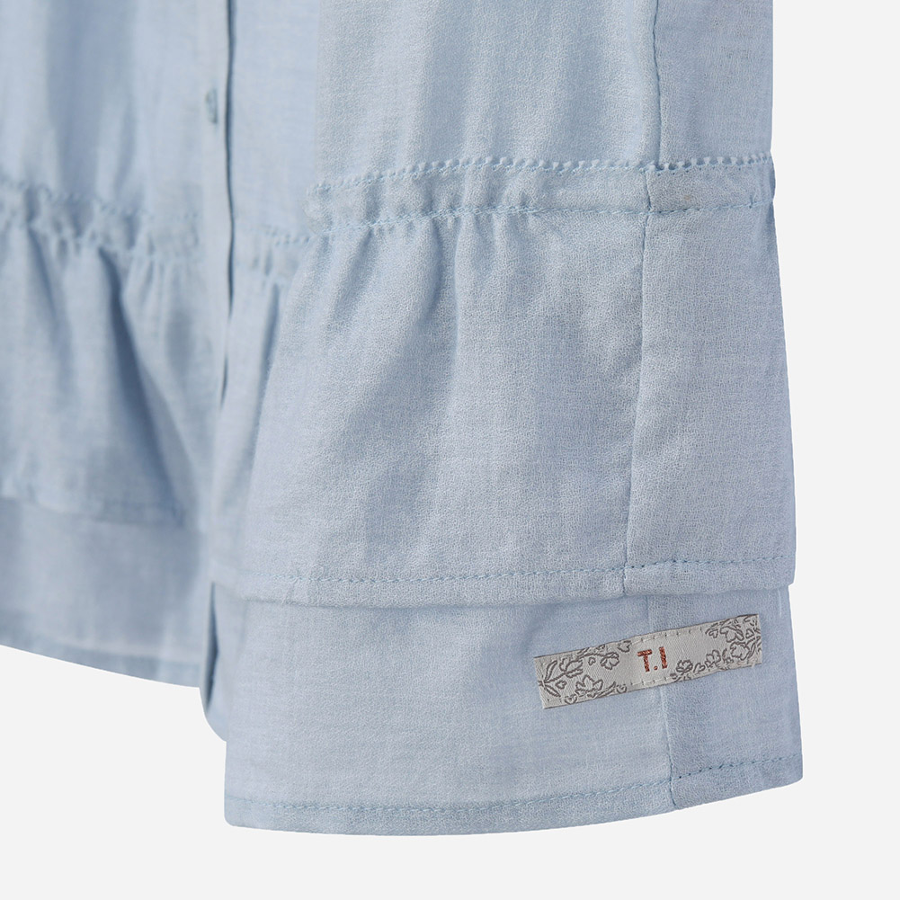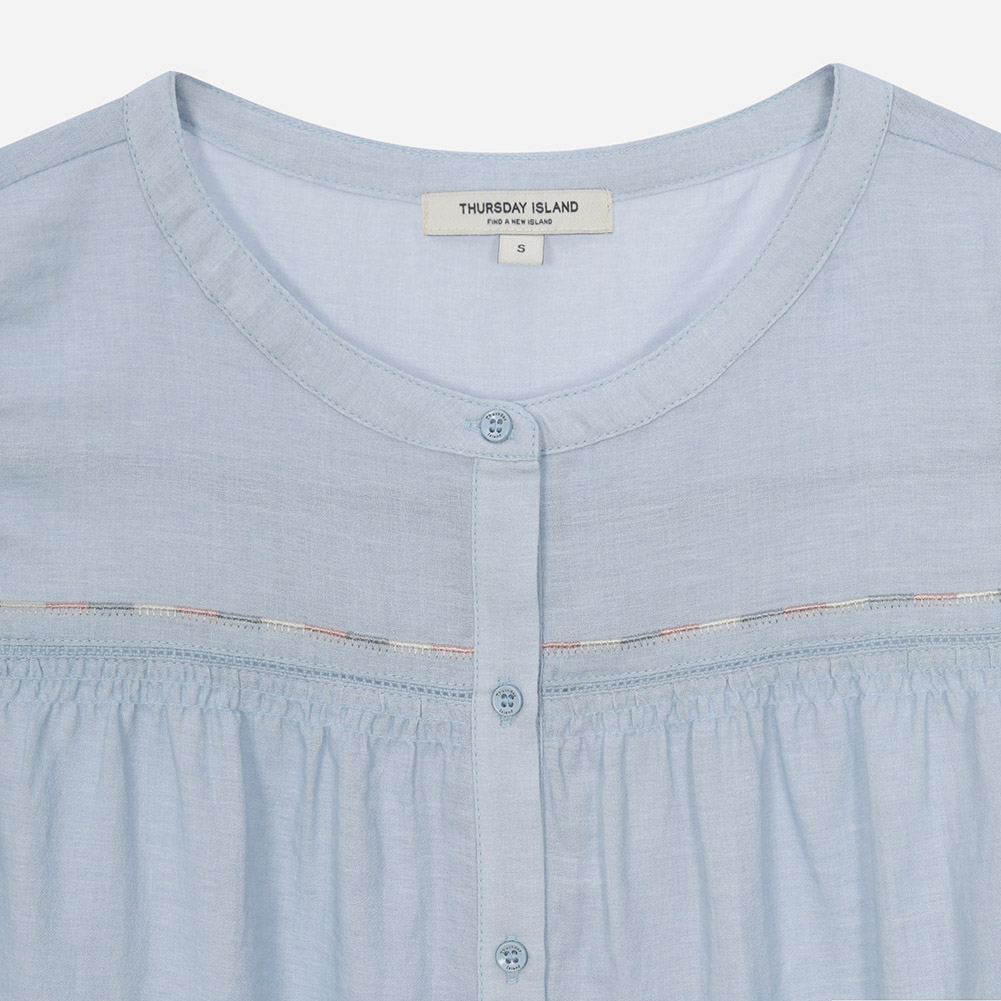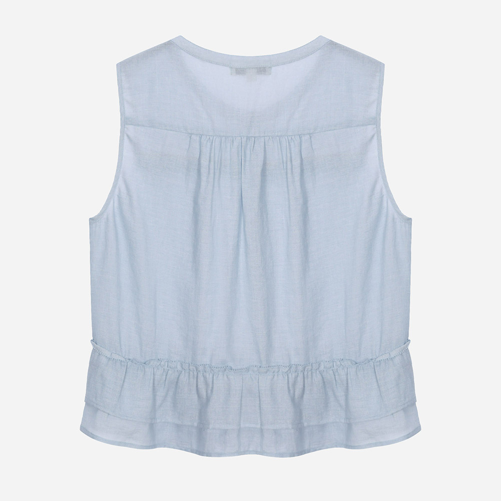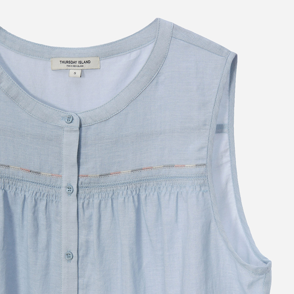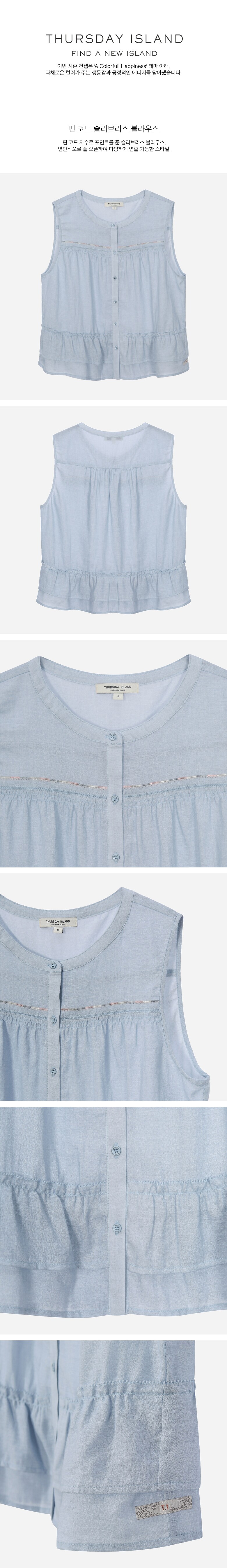 핀 코드 자수로 포인트를 준 슬리브리스 블라우스.