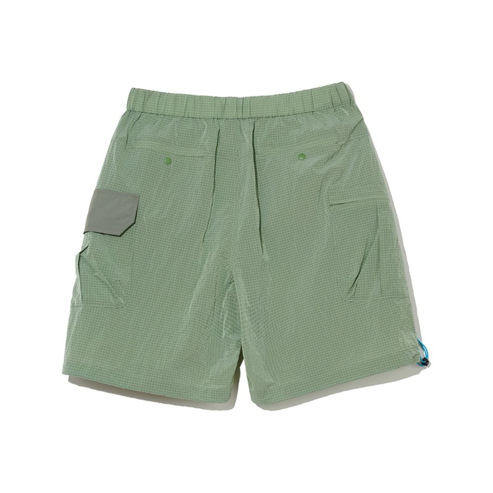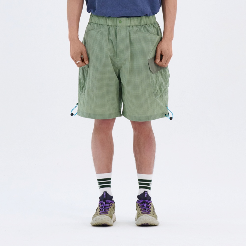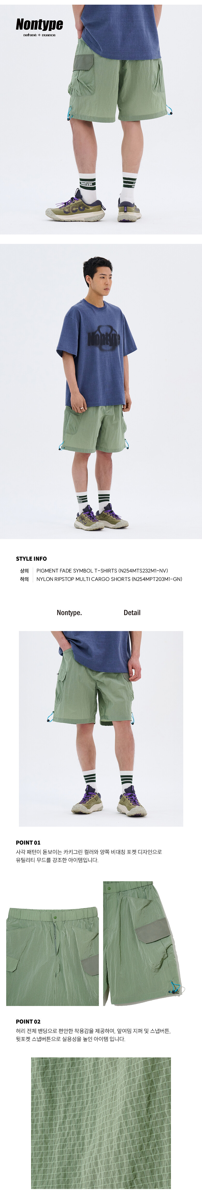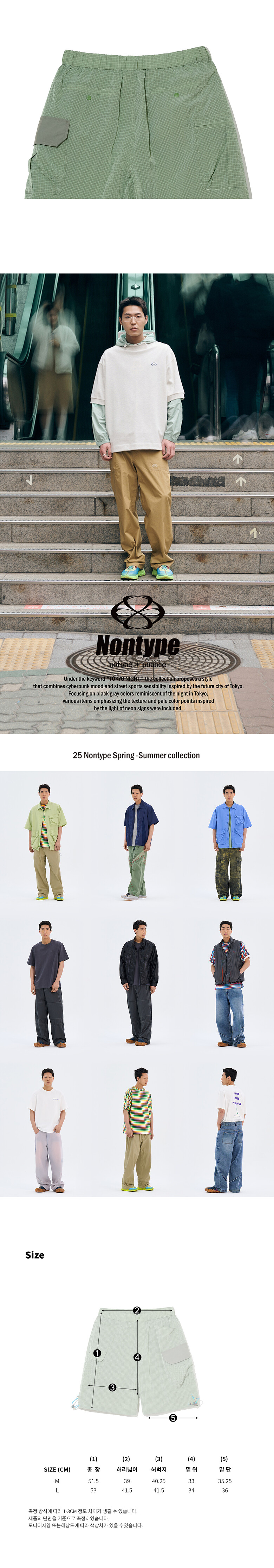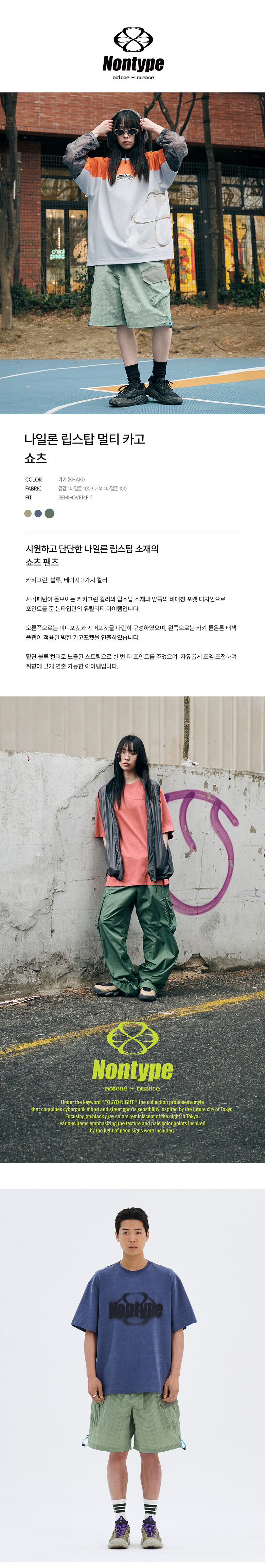 - 사각패턴이 돋보이는 카키그린 컬러의 립스탑 소재와 양쪽의 비대칭 포켓 디자인으로 포인트를 준 논타입만의 유틸리티 아이템