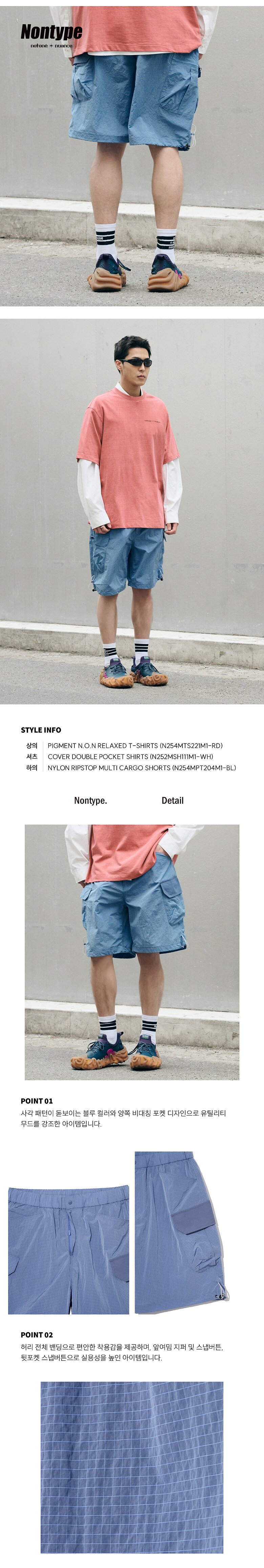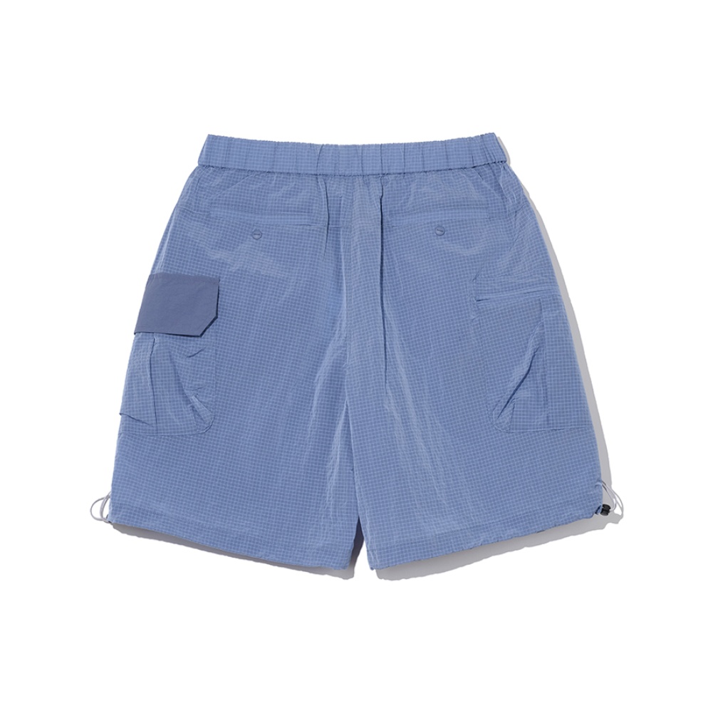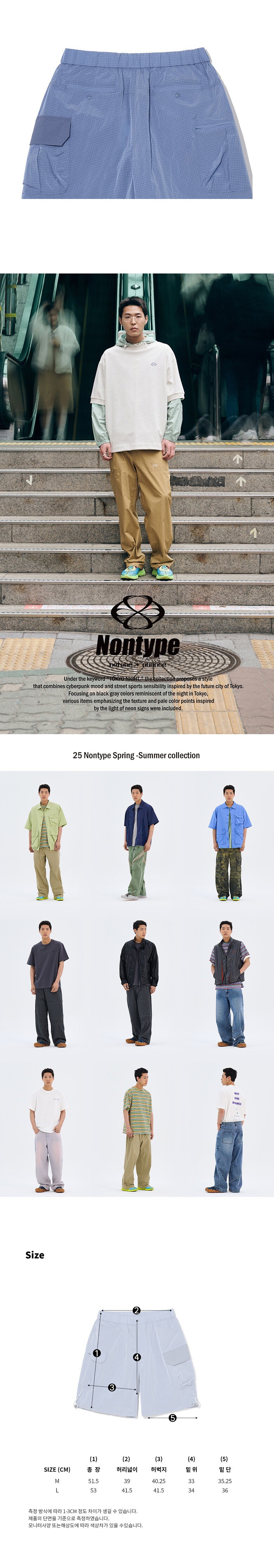 - 사각패턴이 돋보이는 블루 컬러의 립스탑 소재와 양쪽의 비대칭 포켓 디자인으로 포인트를 준 논타입만의 유틸리티 아이템
