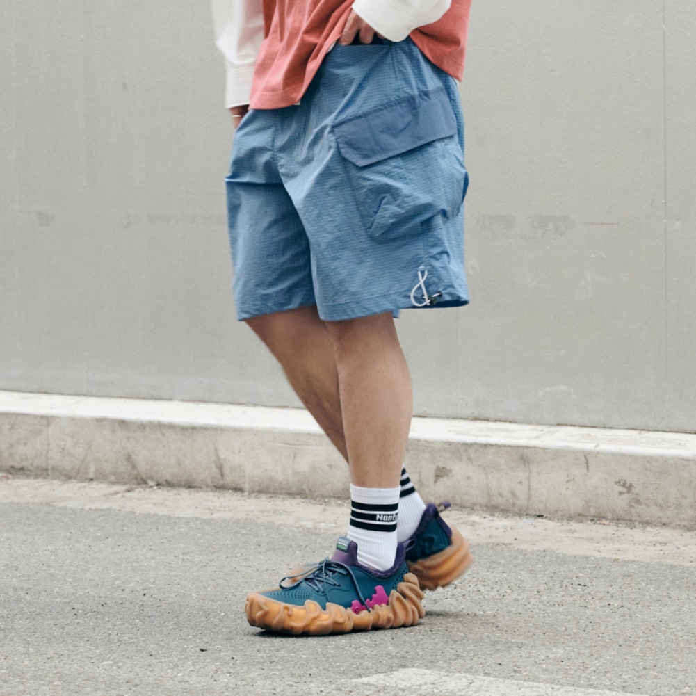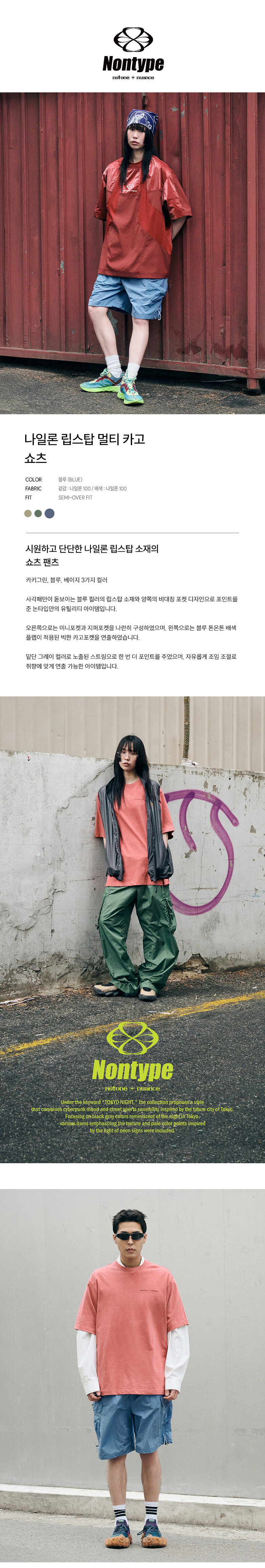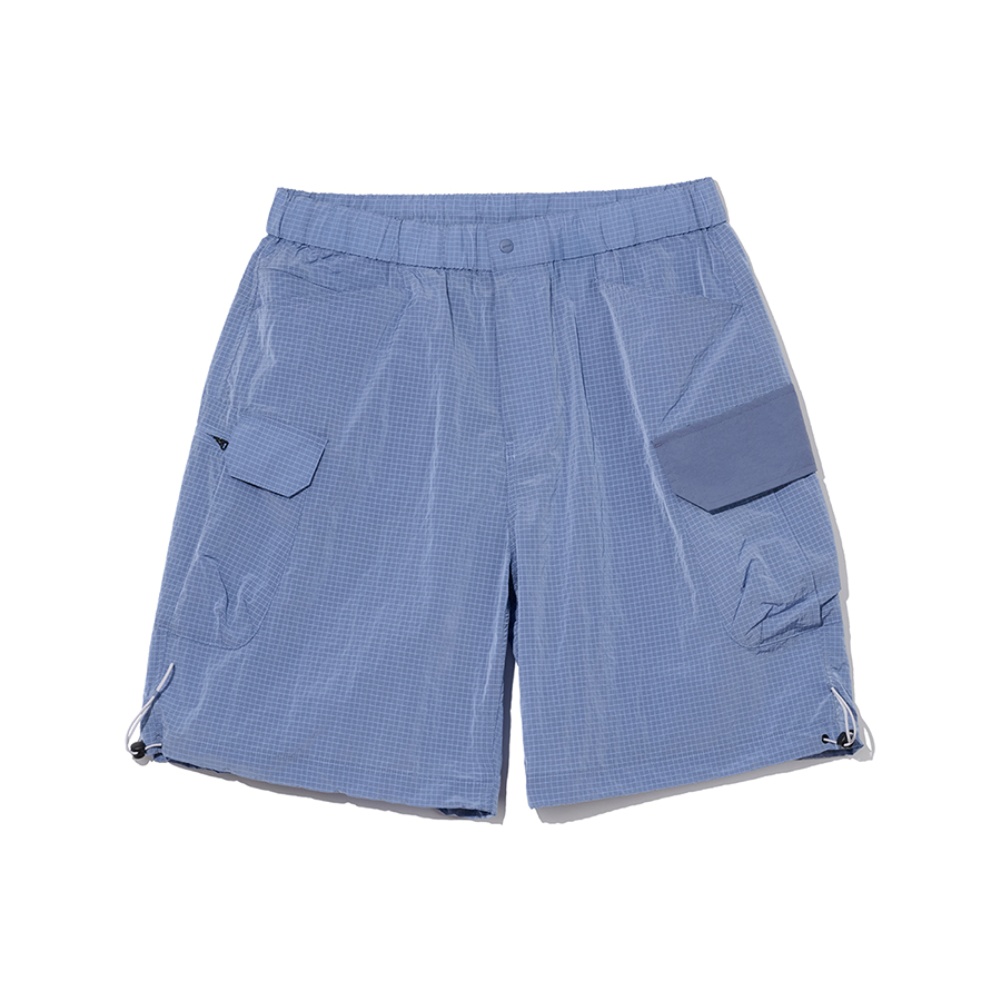 - 사각패턴이 돋보이는 블루 컬러의 립스탑 소재와 양쪽의 비대칭 포켓 디자인으로 포인트를 준 논타입만의 유틸리티 아이템