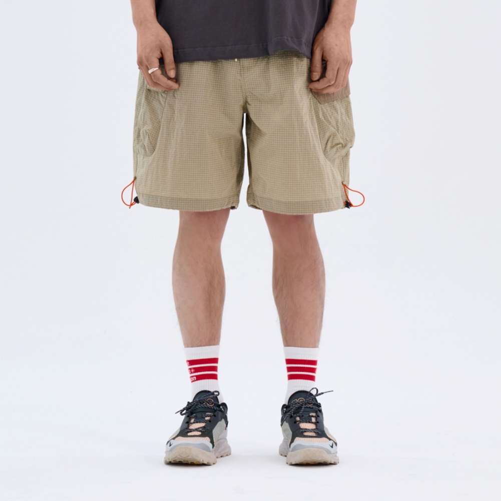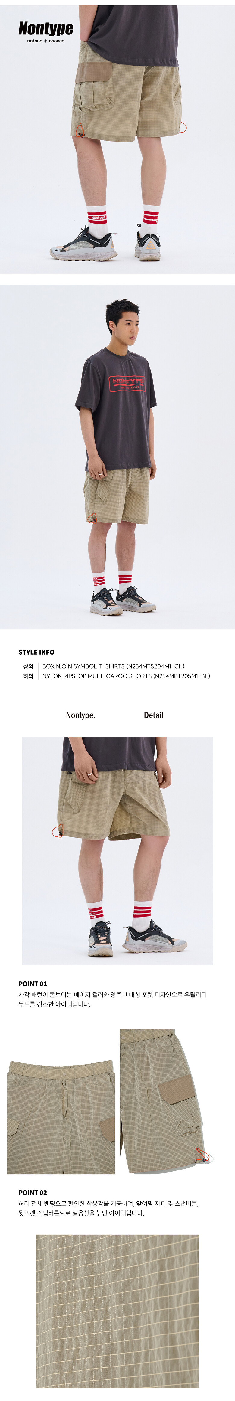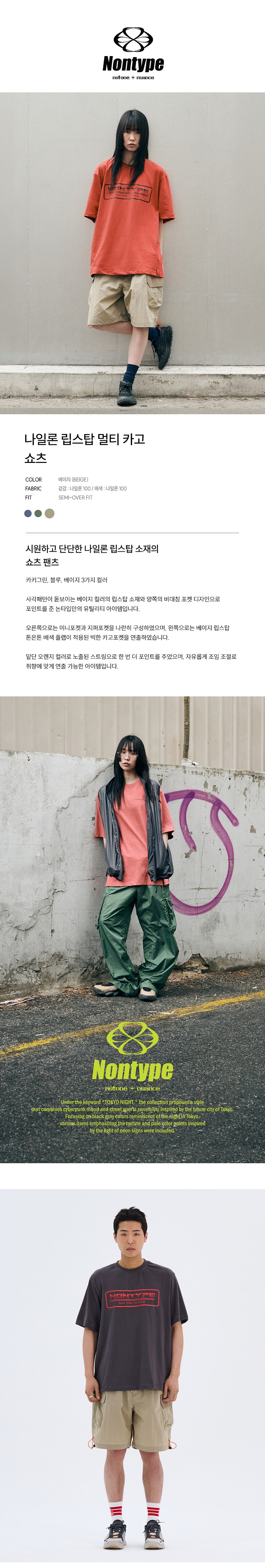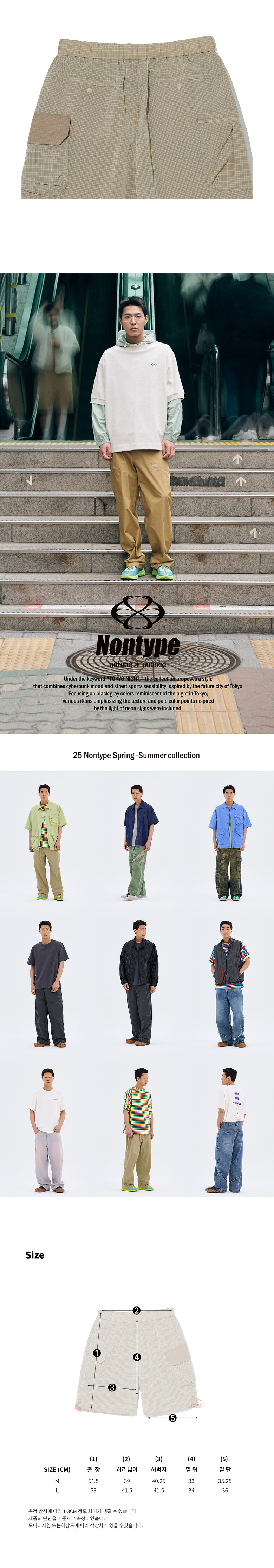 - 사각패턴이 돋보이는 베이지 컬러의 립스탑 소재와 양쪽의 비대칭 포켓 디자인으로 포인트를 준 논타입만의 유틸리티 아이템