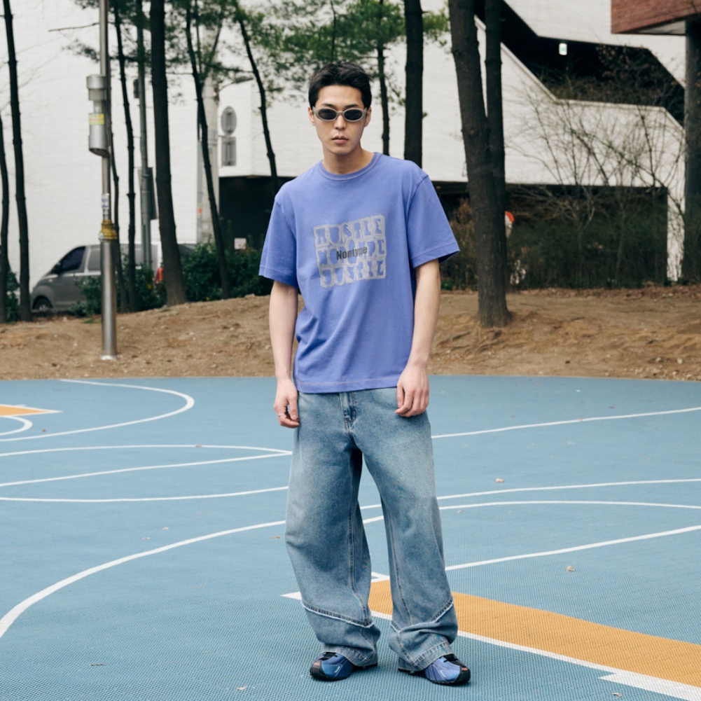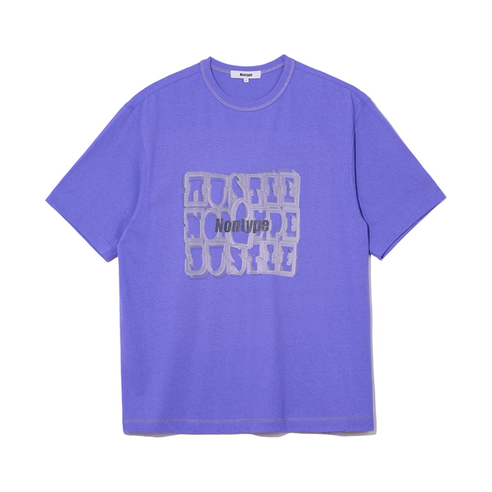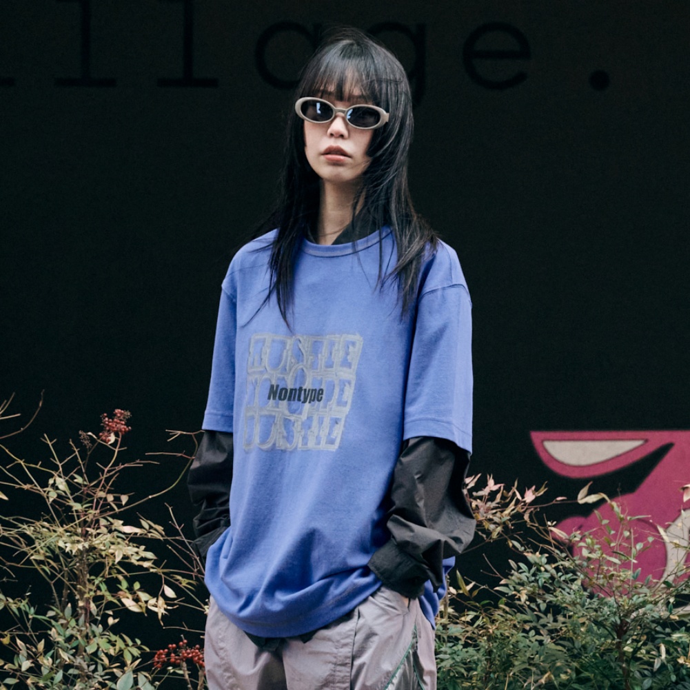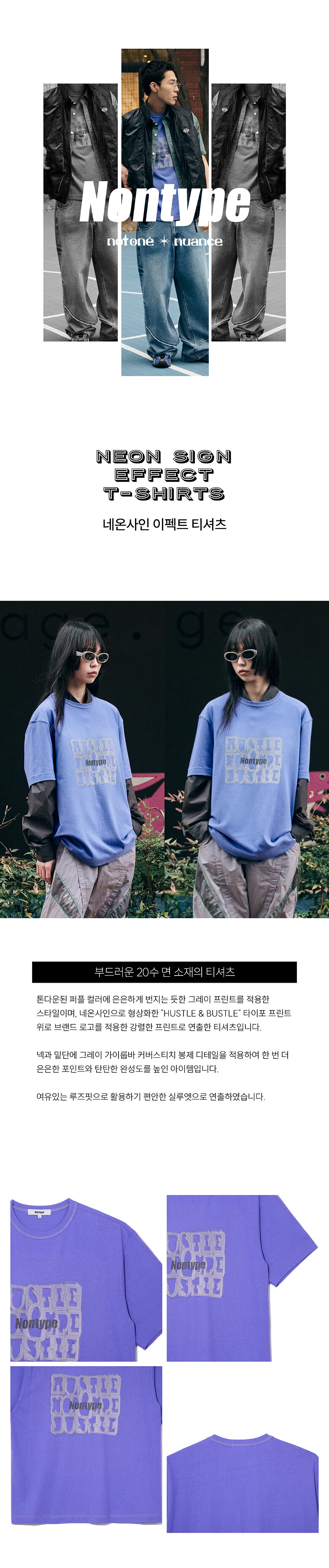 - 톤다운된 퍼플 컬러에 은은하게 번지는 듯한 그레이 프린트를 적용한 스타일