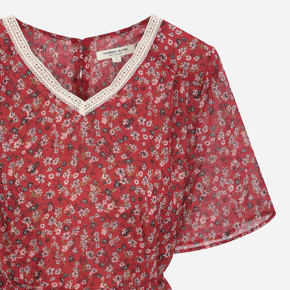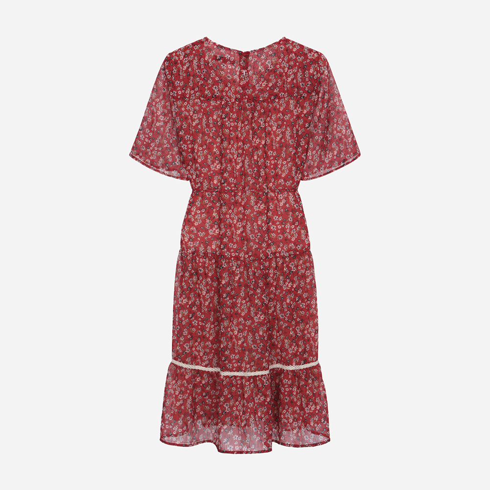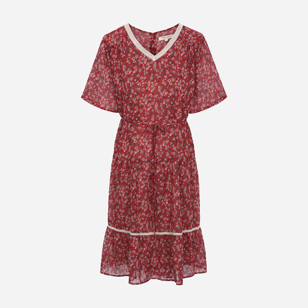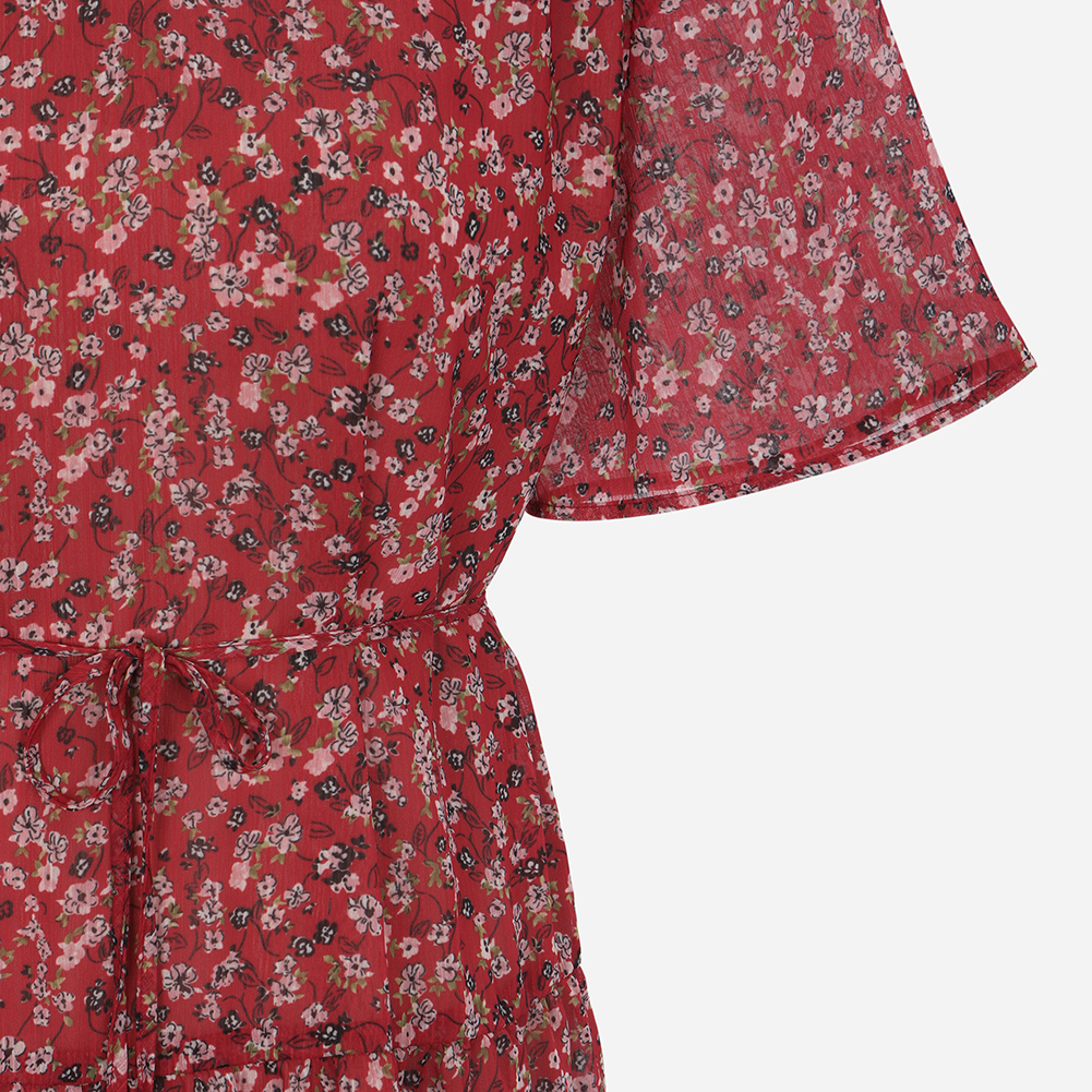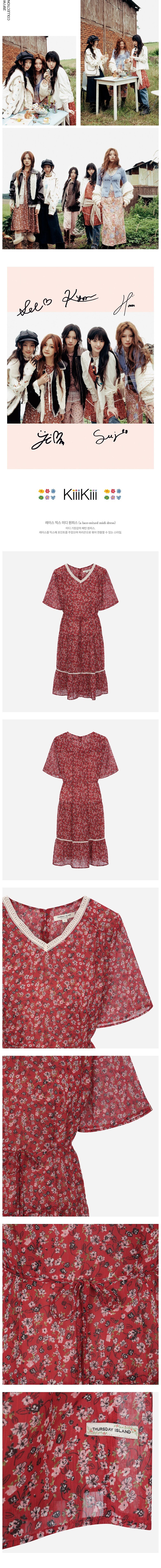 레이스를 믹스해 포인트를 주었으며 허리끈으로 묶어 연출할 수 있는 스타일.