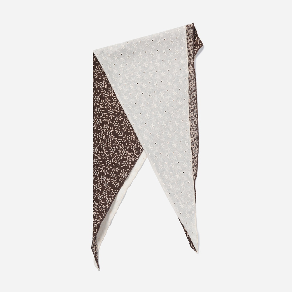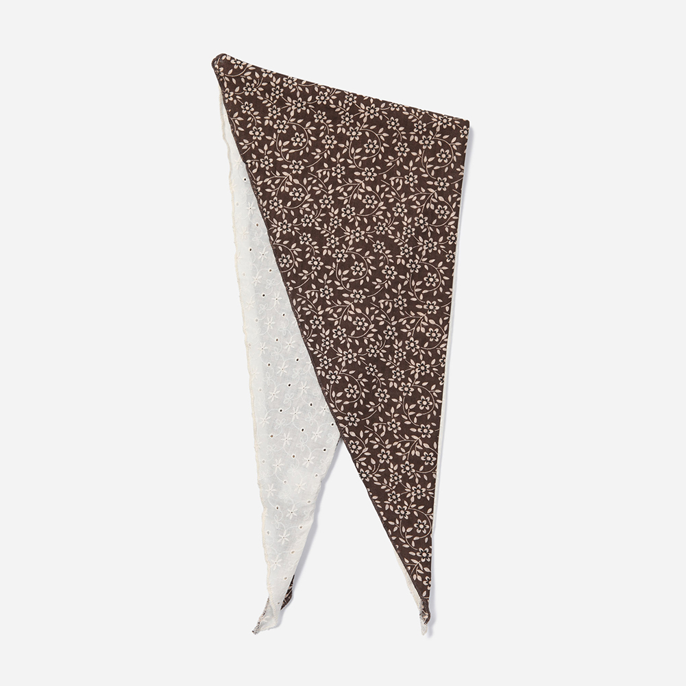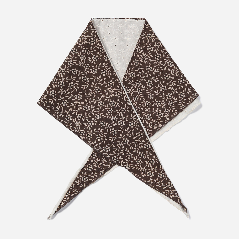 플라워 패턴과 자수가 반반 들어간 가벼운 면 소재의 스카프.