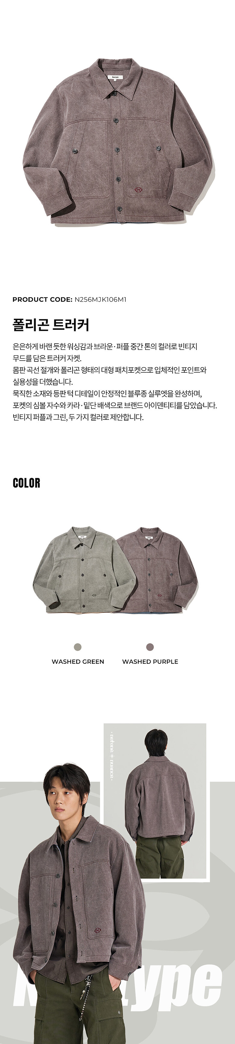 - 브라운과 퍼플 중간 톤의 차분한 컬러감으로 빈티지한 분위기 연출