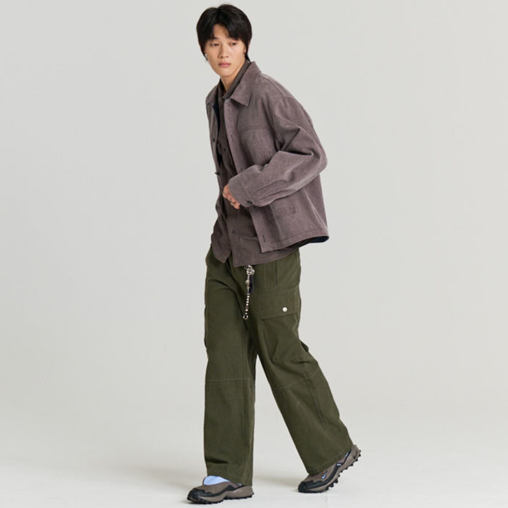 - 몸판을 가로지르는 곡선 절개선으로 절제된 포인트를 주었으며, 그 아래로 빅포켓 레이어드 구현