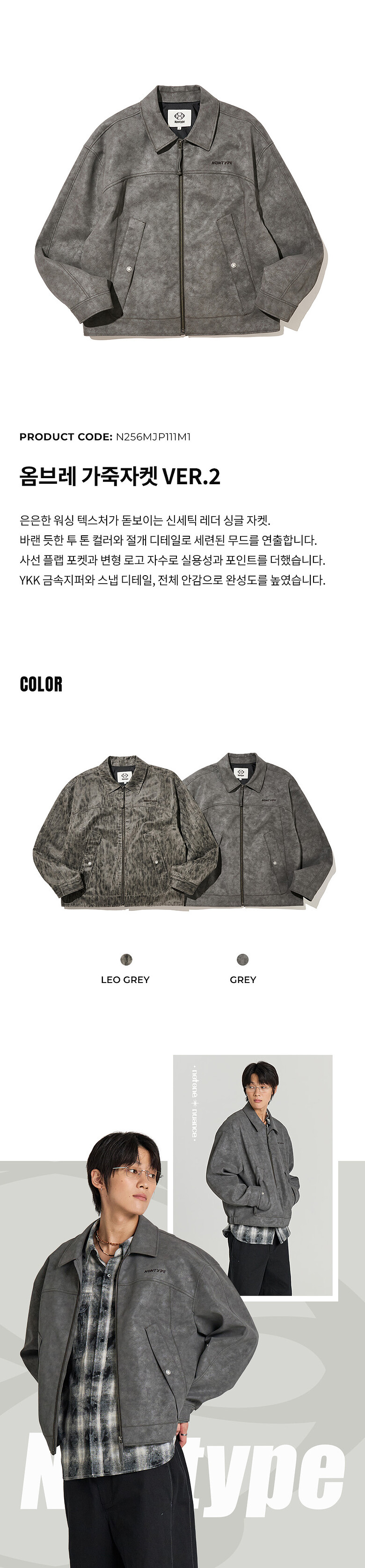 - 자연스러운 워싱 기법으로 바랜듯한 실버그레이 투 톤의 워시드한 소재 무드를 구현한 아이템