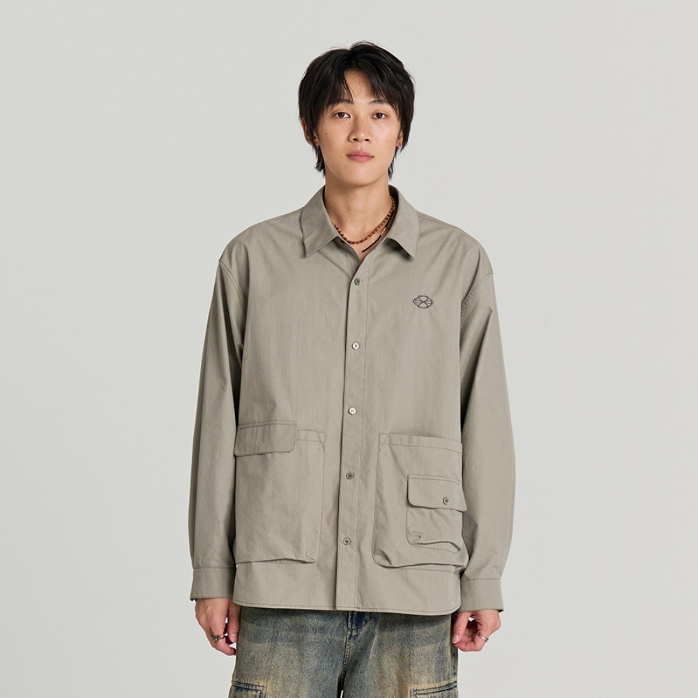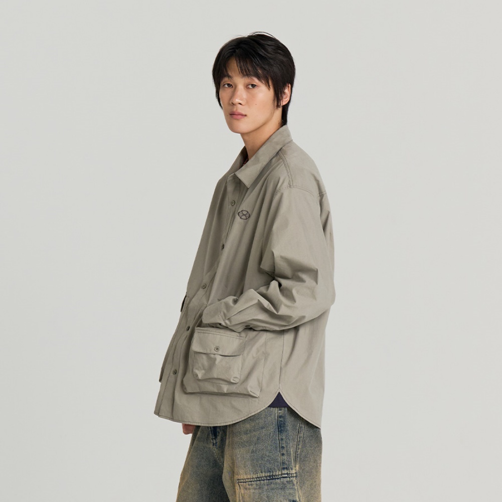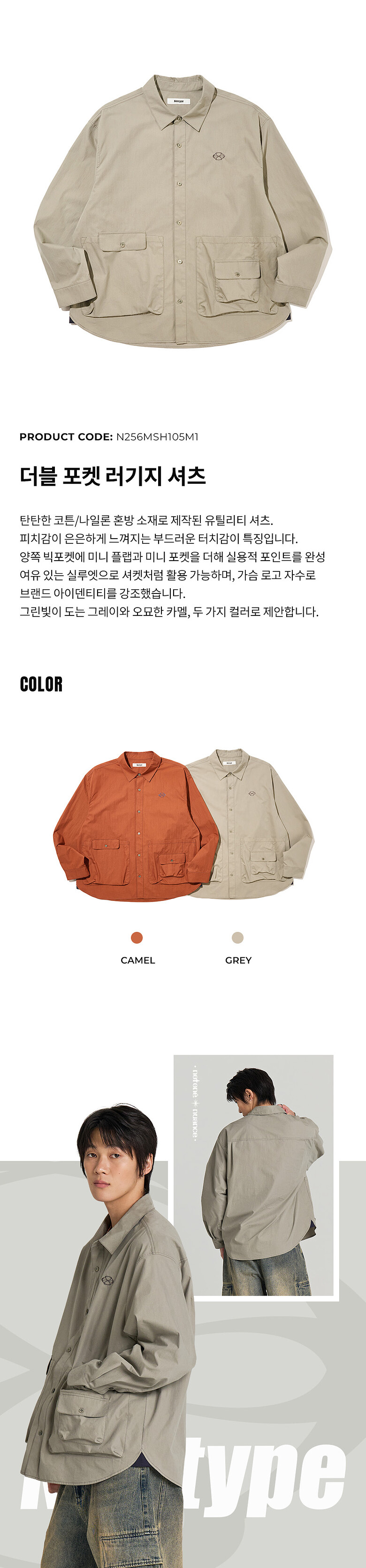 - 양쪽으로 배치된 빅포켓이 포인트로, 한 쪽은 미니 플랩 디테일과 다른 쪽은 포켓 위로 미니포켓을 더한 디자인