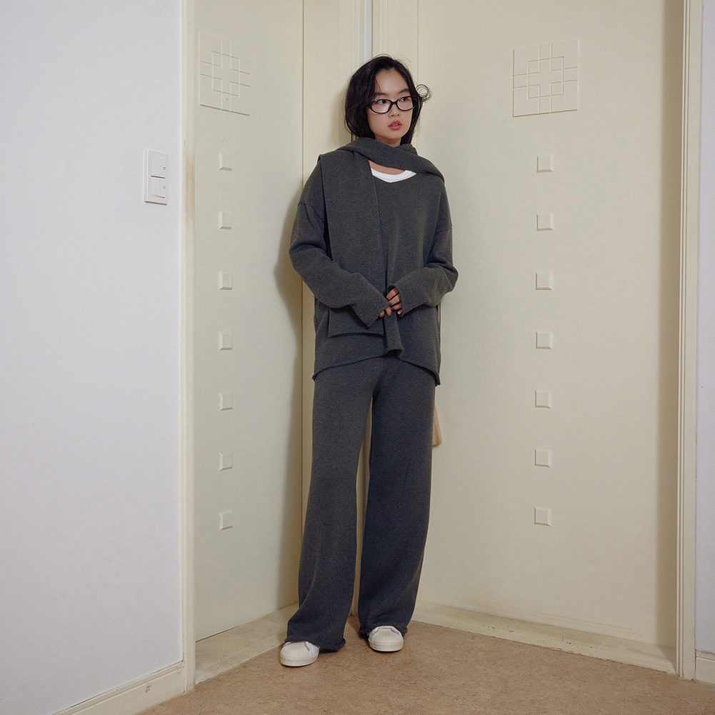 넓은 허리밴드와 신축성 좋은 원단으로 편안하게 연출 가능한 스타일.
