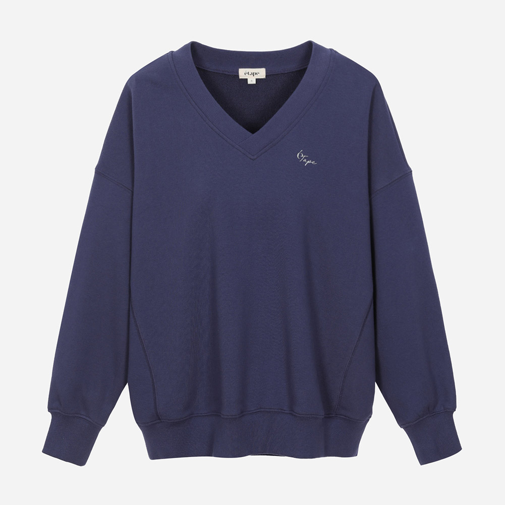 깊은 브이넥과 자수로 포인트를 준 스타일.