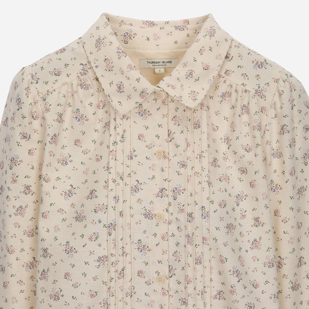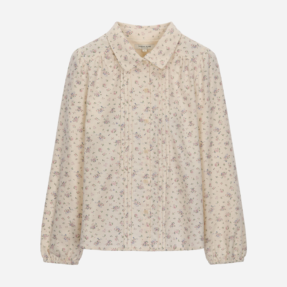 플라워 패턴의 셔츠형 블라우스.
