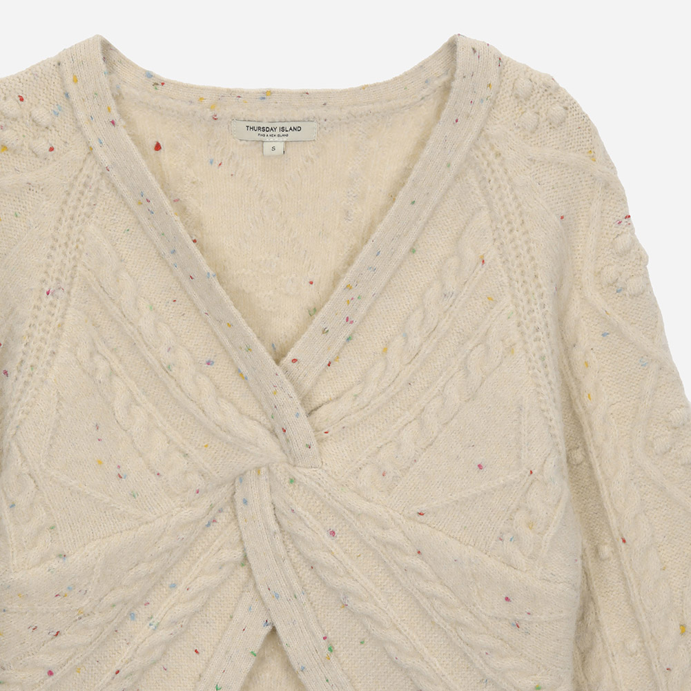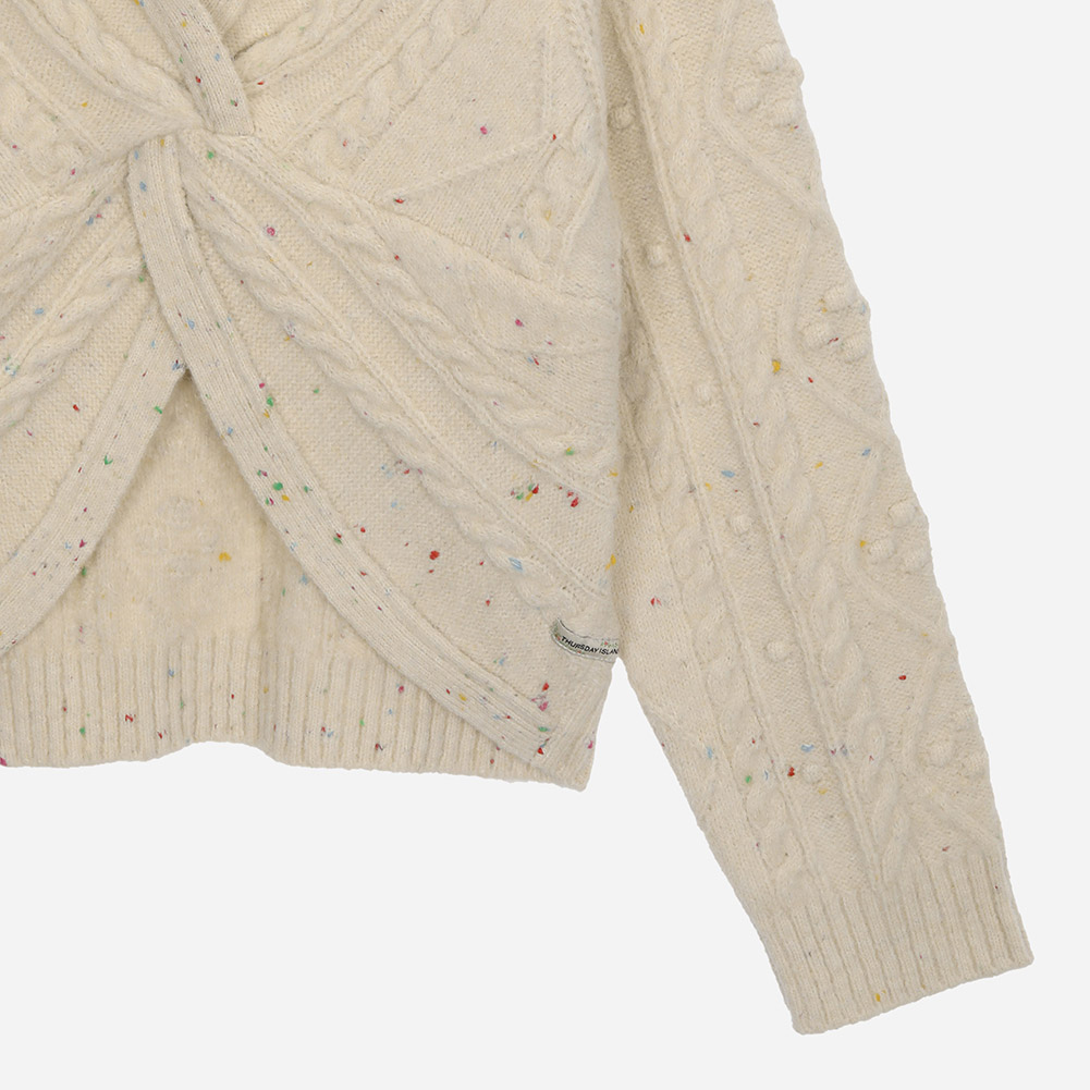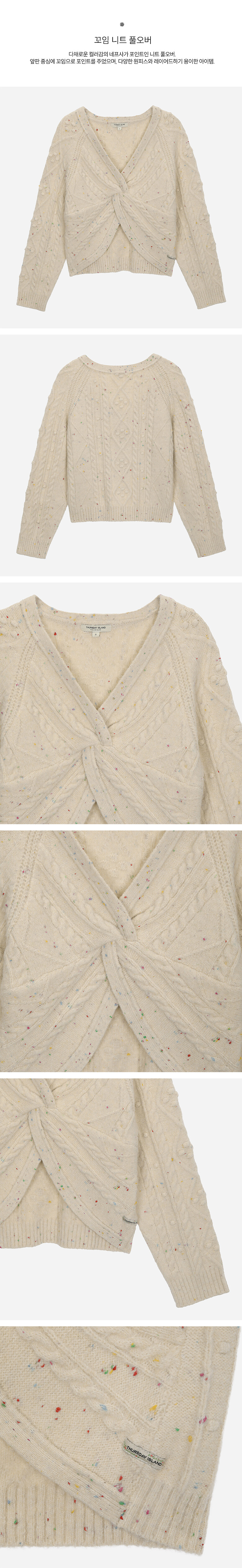 다채로운 컬러감의 네프사가 포인트인 니트 풀오버.앞판 중심에 꼬임으로 포인트를 주었으며,다양한 원피스와 레이어드하기 용이한 아이템.