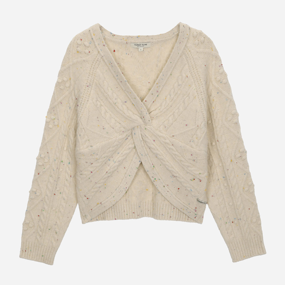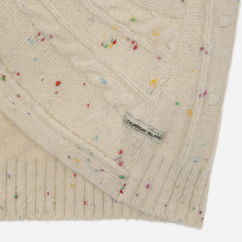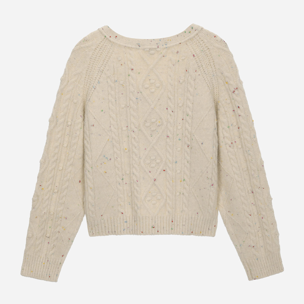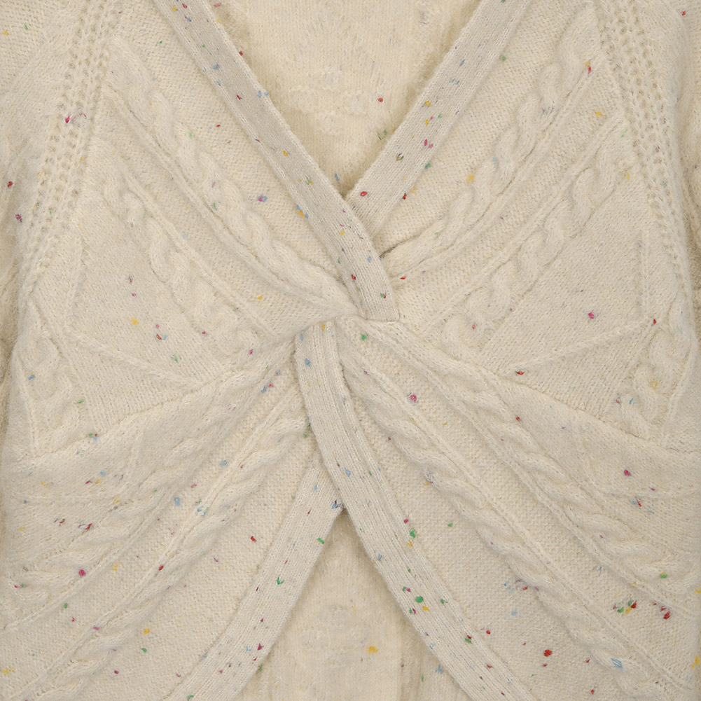 다채로운 컬러감의 네프사가 포인트인 니트 풀오버.앞판 중심에 꼬임으로 포인트를 주었으며,다양한 원피스와 레이어드하기 용이한 아이템.