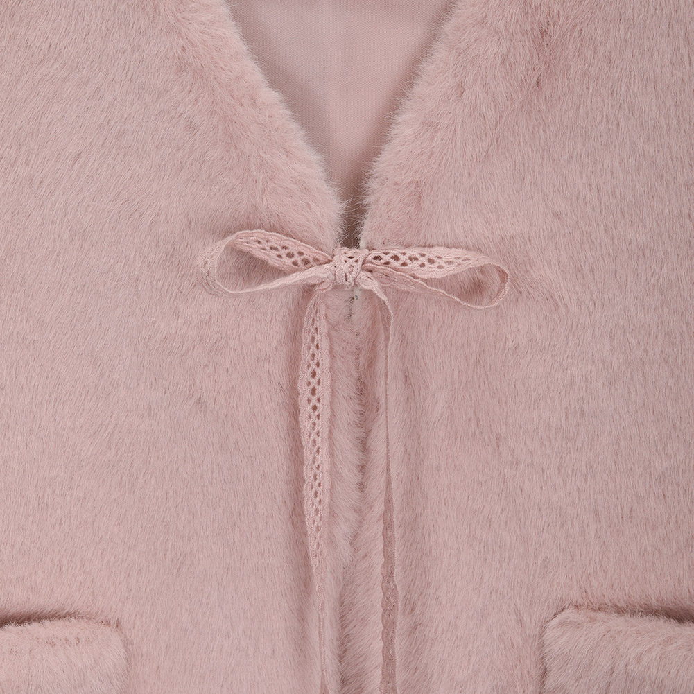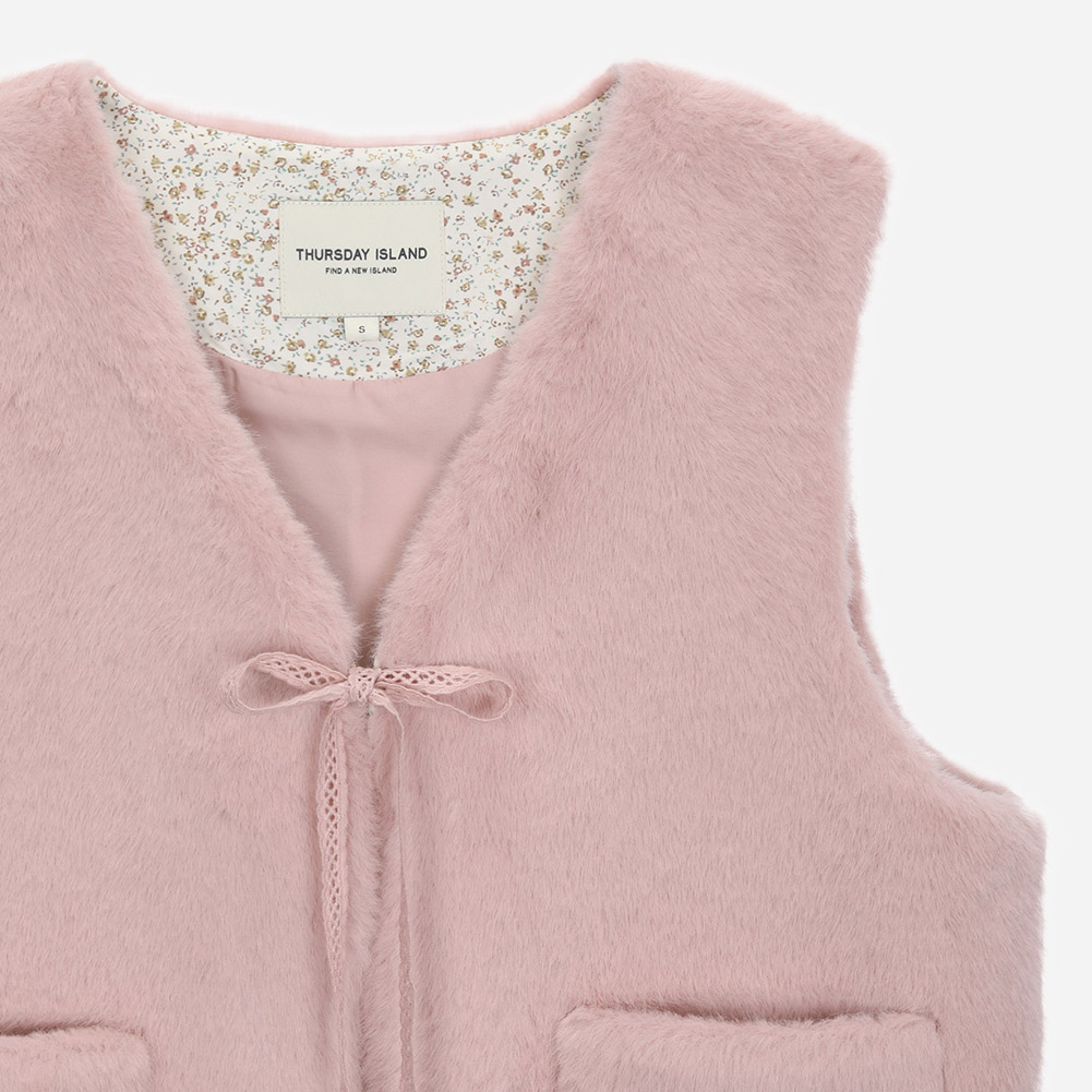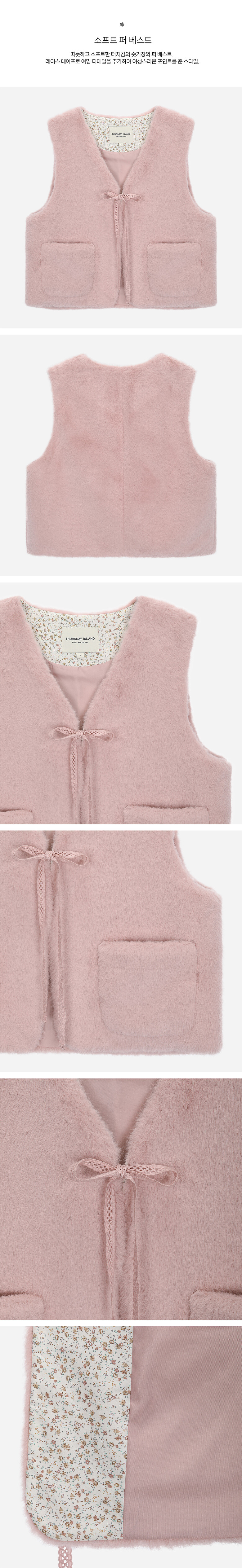 레이스 테이프로 여밈 디테일을 추가하여 여성스러운 포인트를 준 스타일.