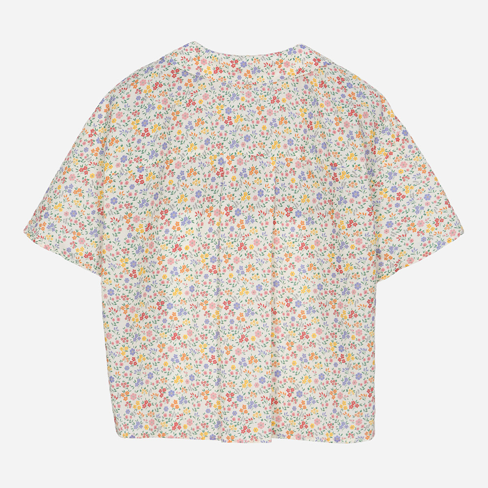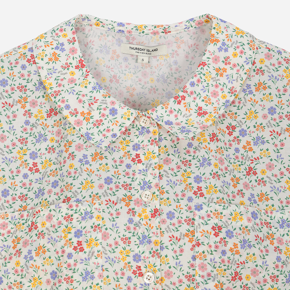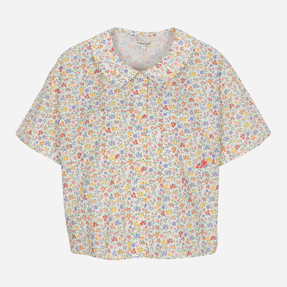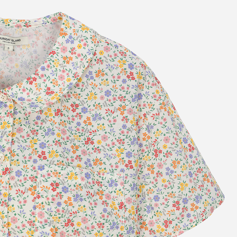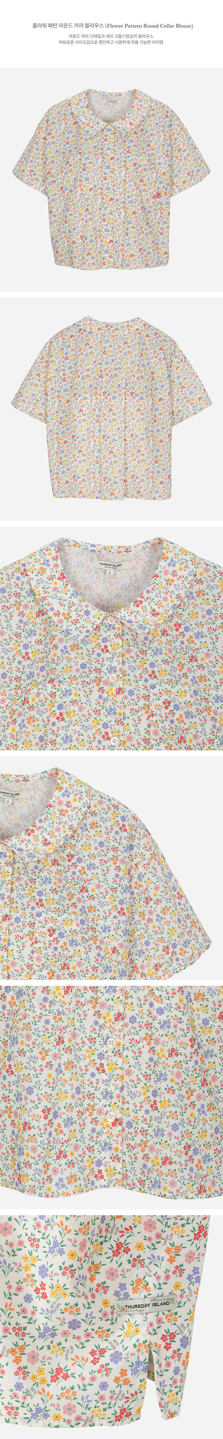 라운드 카라 디테일과 세미 크롭기장감의 블라우스.여유로운 사이즈감으로 편안하고 시원하게 착용 가능한 아이템.