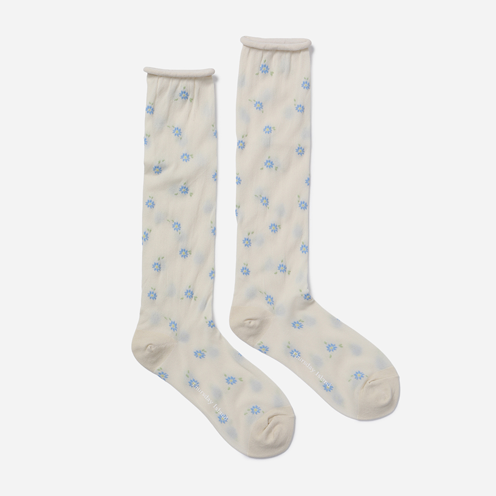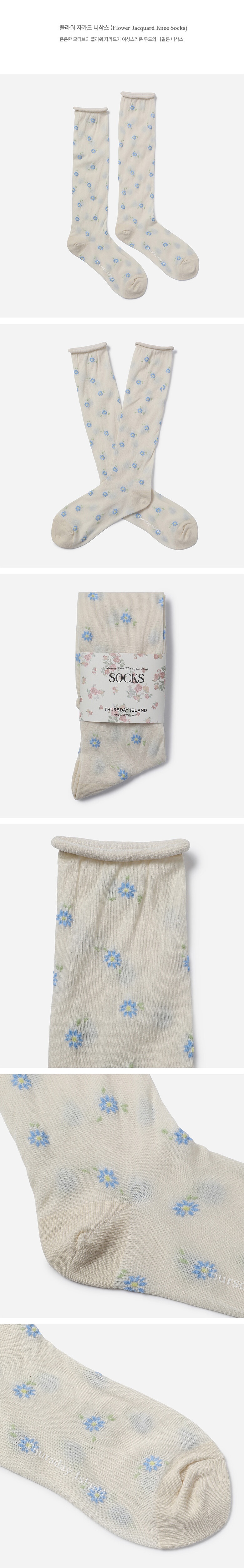 플라워 자카드 니삭스