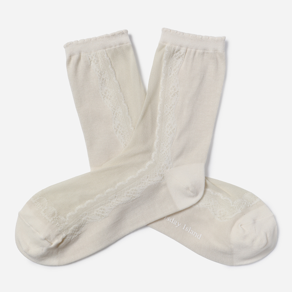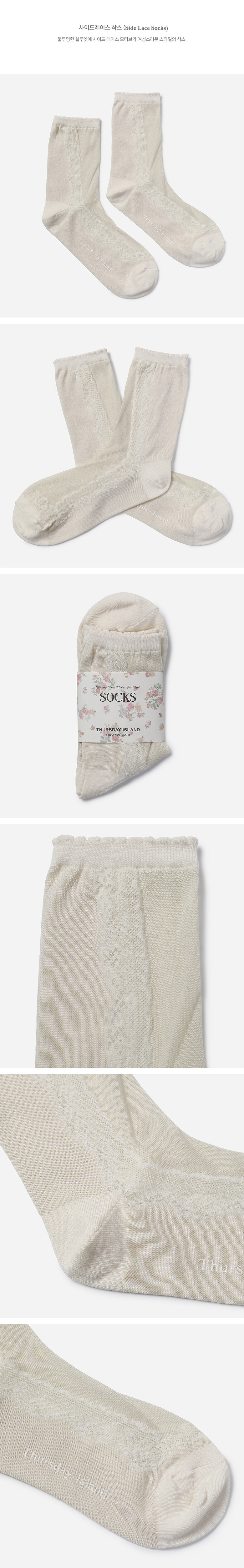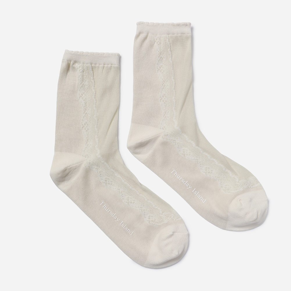 불투명한 실루엣에 사이드 레이스 모티브가 여성스러운 스타일의 삭스.
