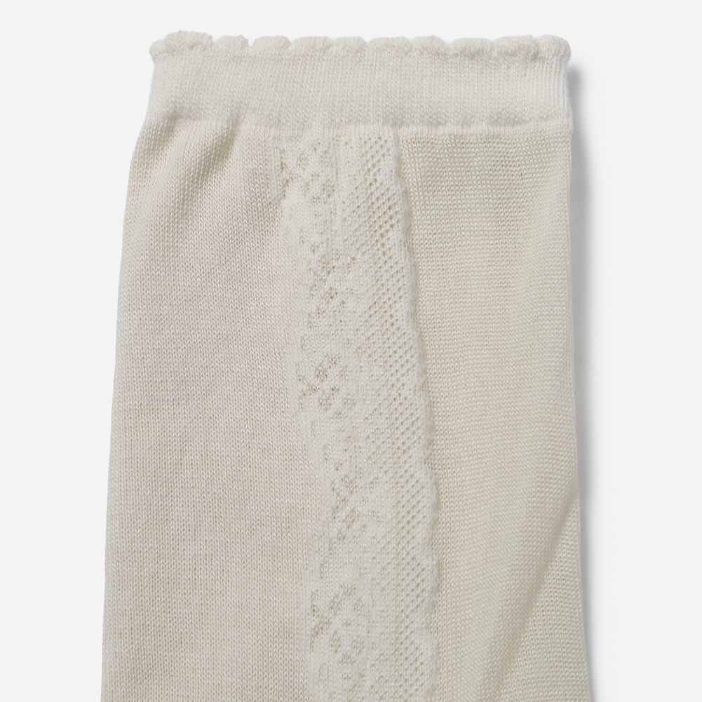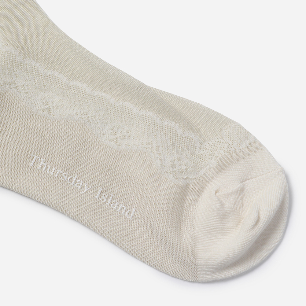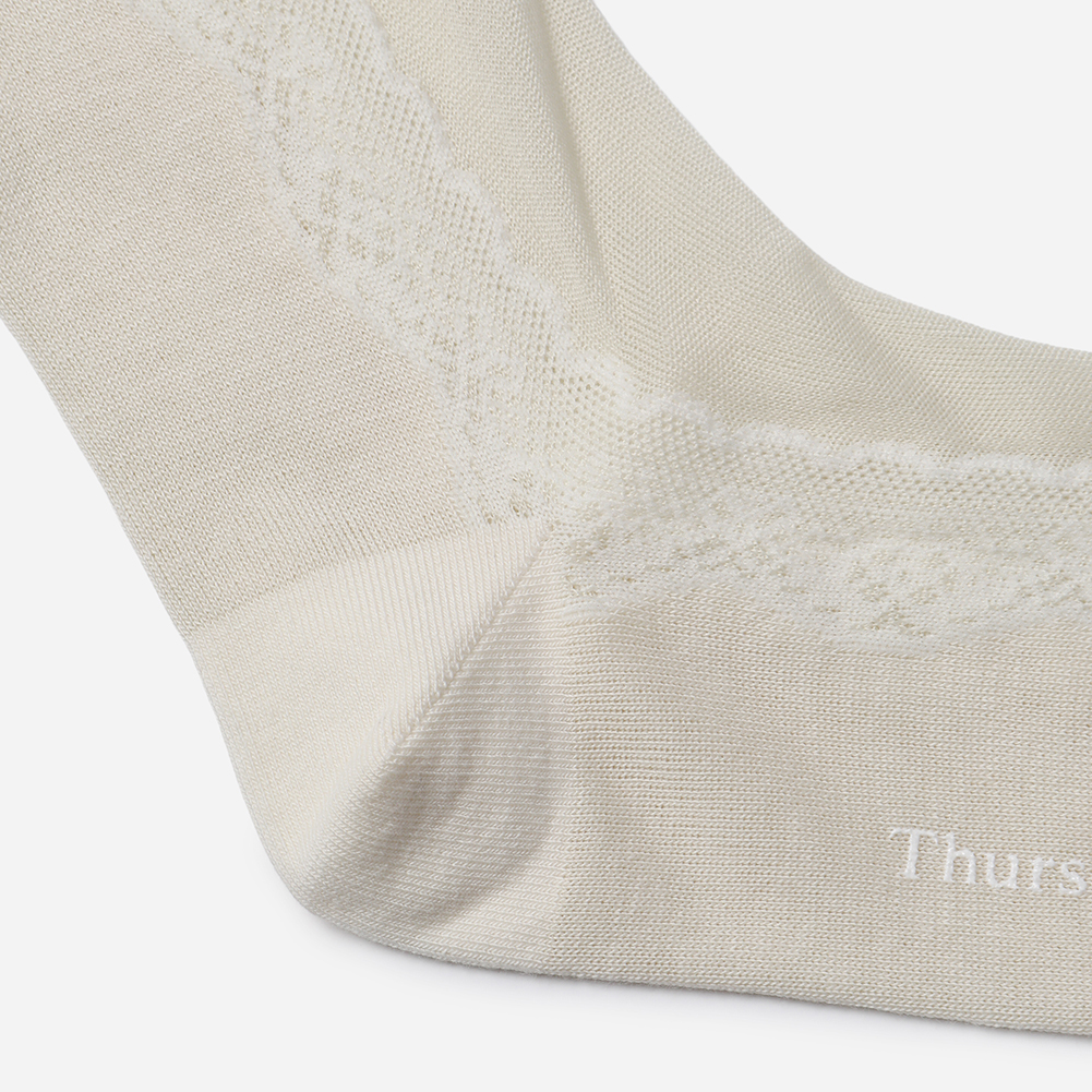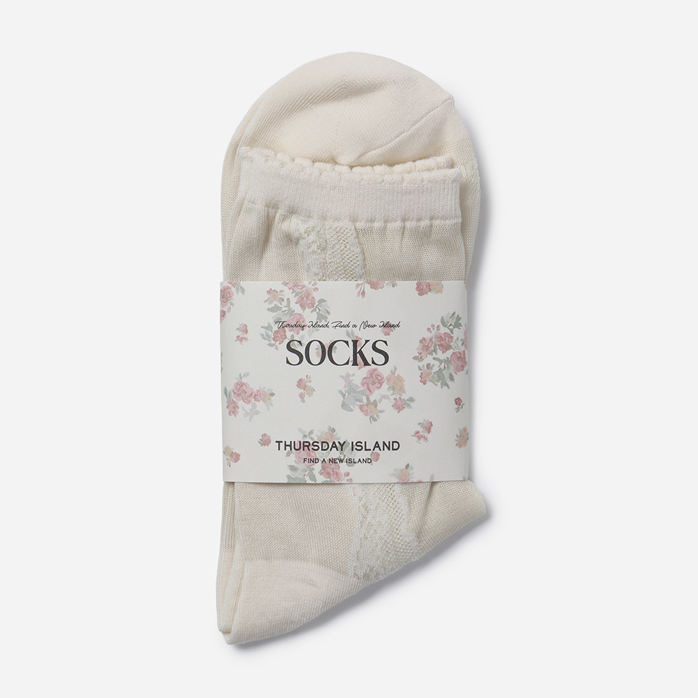 불투명한 실루엣에 사이드 레이스 모티브가 여성스러운 스타일의 삭스.
