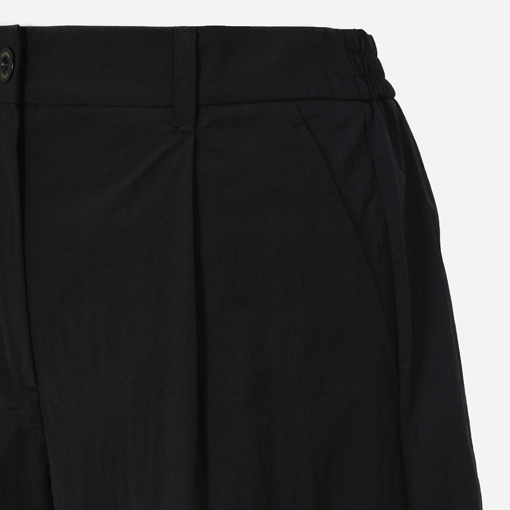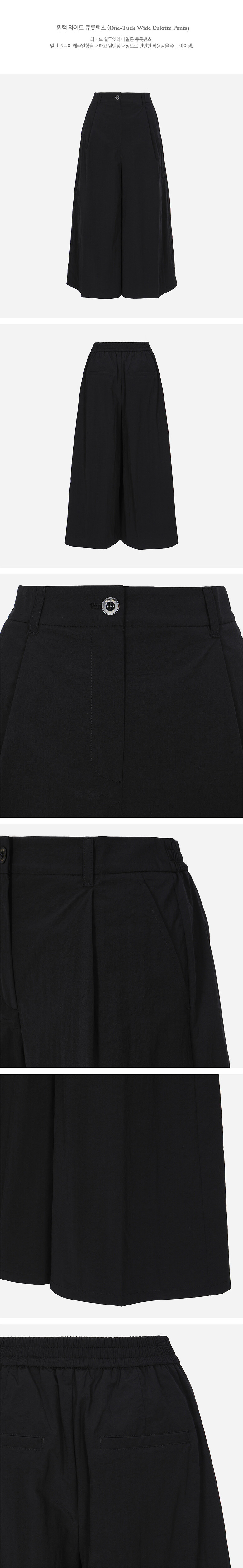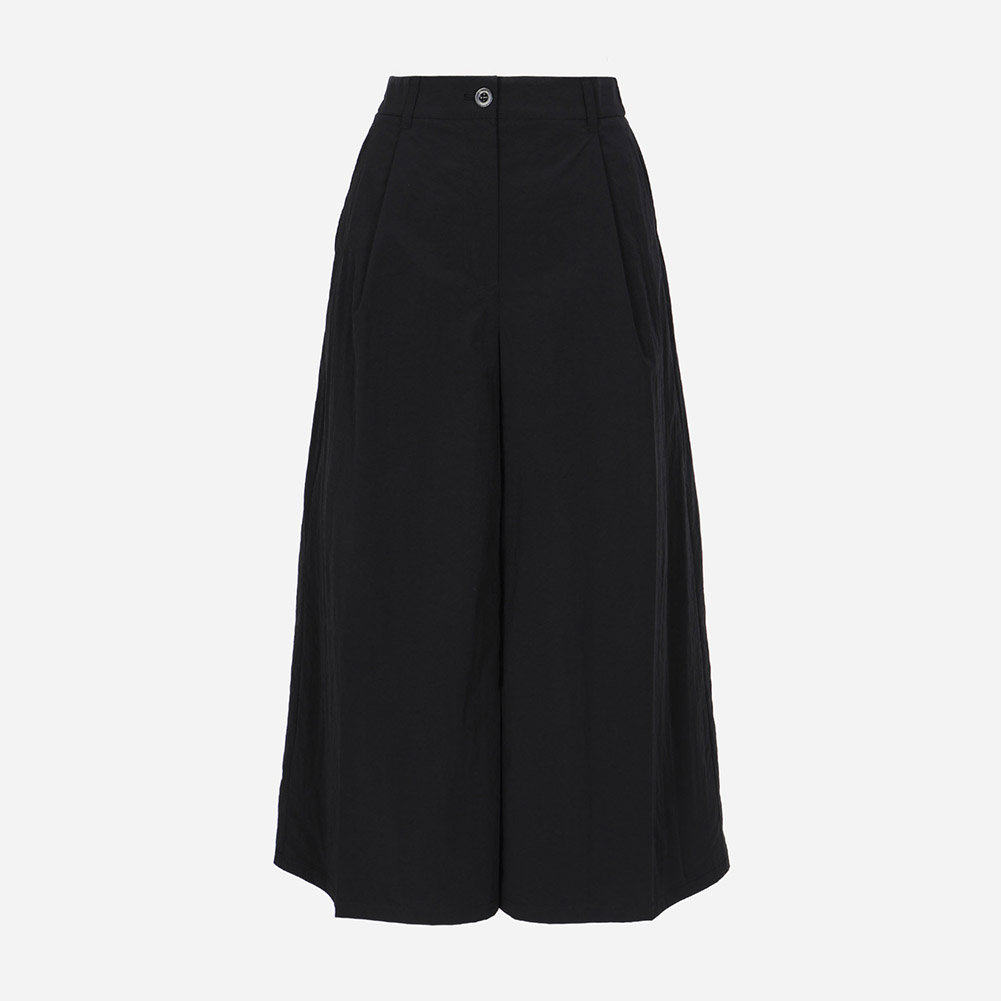 와이드 실루엣의 나일론 큐롯팬츠.앞판 원턱이 캐주얼함을 더하고 뒷밴딩 내장으로 편안한 착용감을 주는 아이템.
