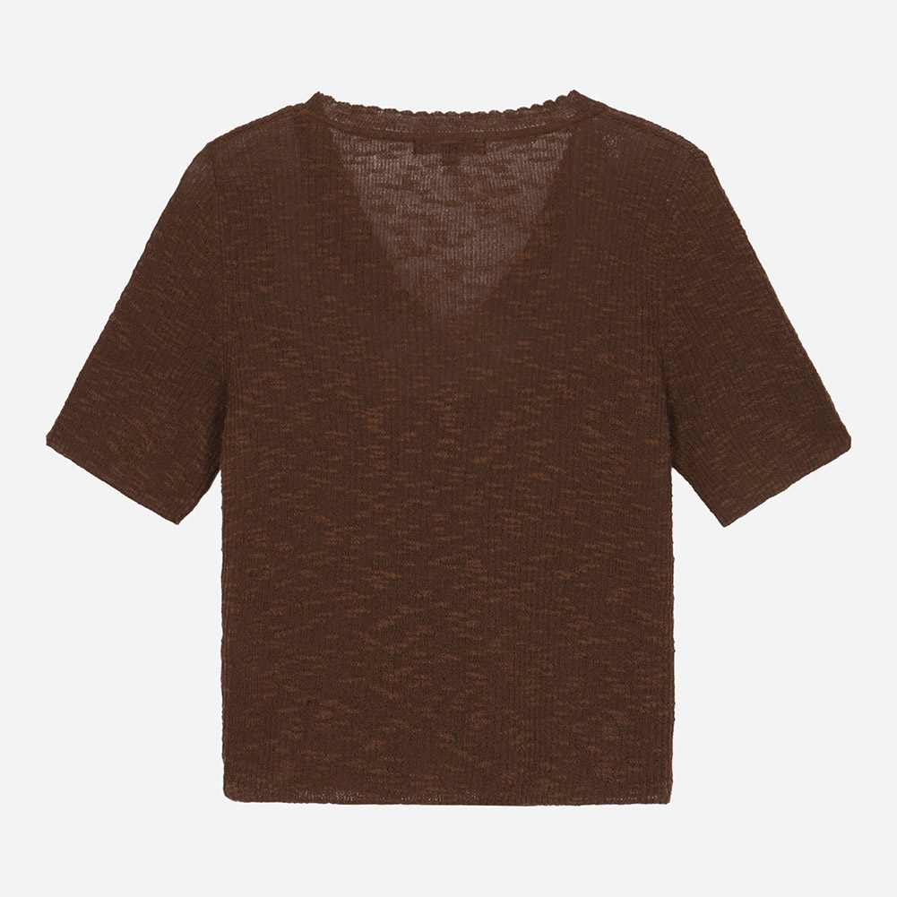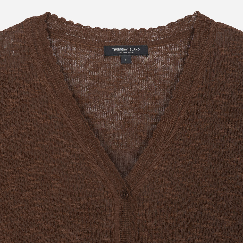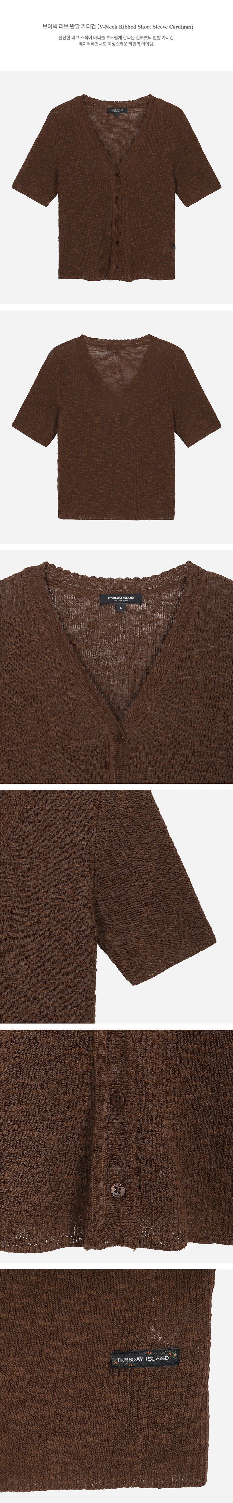 브이넥 리브 반팔 가디건