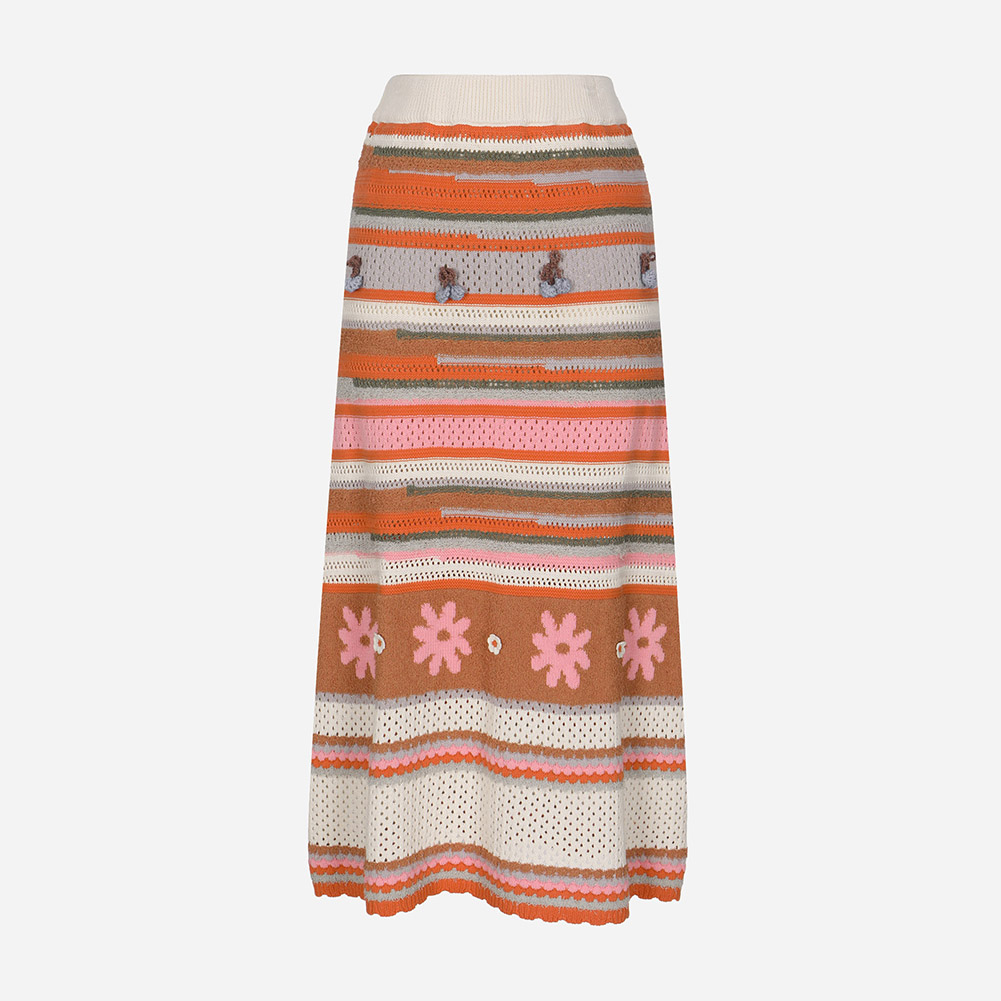 다양한 원사와 다채로운 컬러감이 포인트가 되는 3pcs 시리즈 여름 스커트.꽃모양과 체리모양 손자수가 귀여운 느낌을 한층 더 살려주는 아이템.