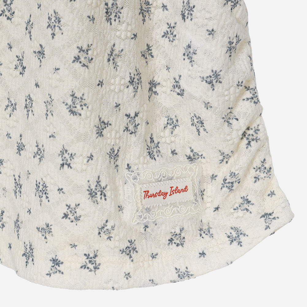 포인트 되는 색감의 플라워 패턴이 조화를 이루는 티셔츠.허리 라인이 살짝 들어가는 디자인으로