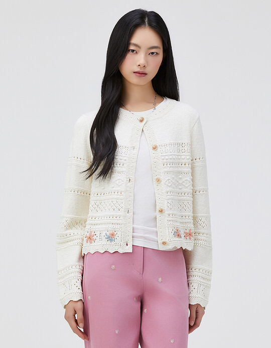 Thursday Island플라워 자수 라운드넥 가디건